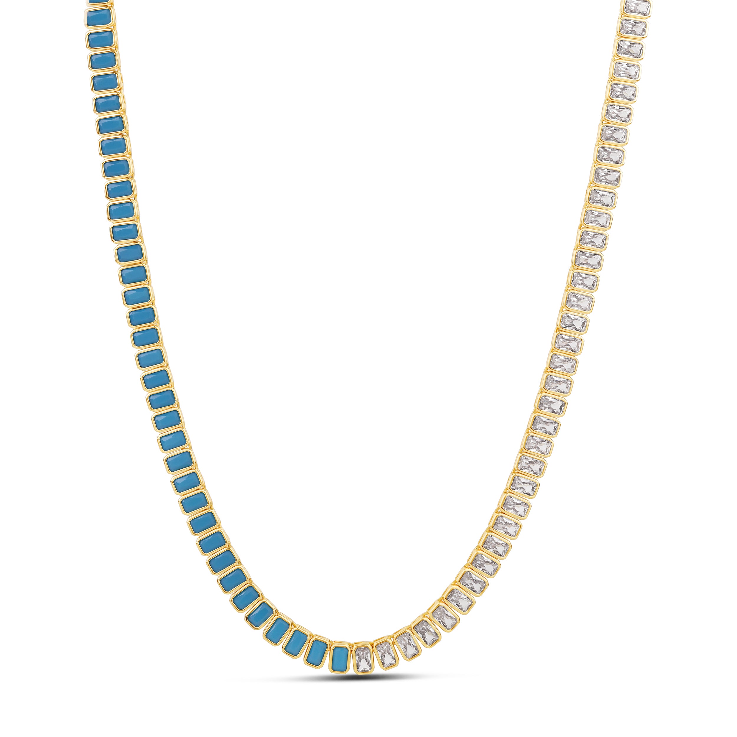 Bezel-Set Emerald Half Turquoise Tennis Bracelet