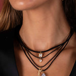 Elevate your style with this Personalized Pave Cursive Name Charm Cord Necklace. Featuring a delicate cursive name charm adorned with sparkling pave stones, it rests gracefully on a sleek cord for a modern look. Customize it with your name or a loved ones for a unique accessory that adds a subtle shine and personal touch to any outfit. Perfect for layering or wearing solo.