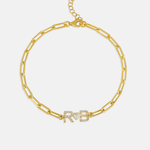 Celebrate your unique bond with this personalized bracelet featuring two pave-set initials separated by a sparkling heart. The elegant paper clip chain adds a modern touch, making it a versatile piece for everyday wear or special occasions. Crafted to reflect your personal story, this bracelet is the perfect meaningful gift or a stylish addition to your own collection.