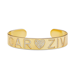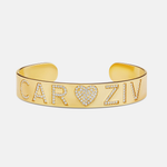 Personalized Name Pave Heart Cuff Bangle