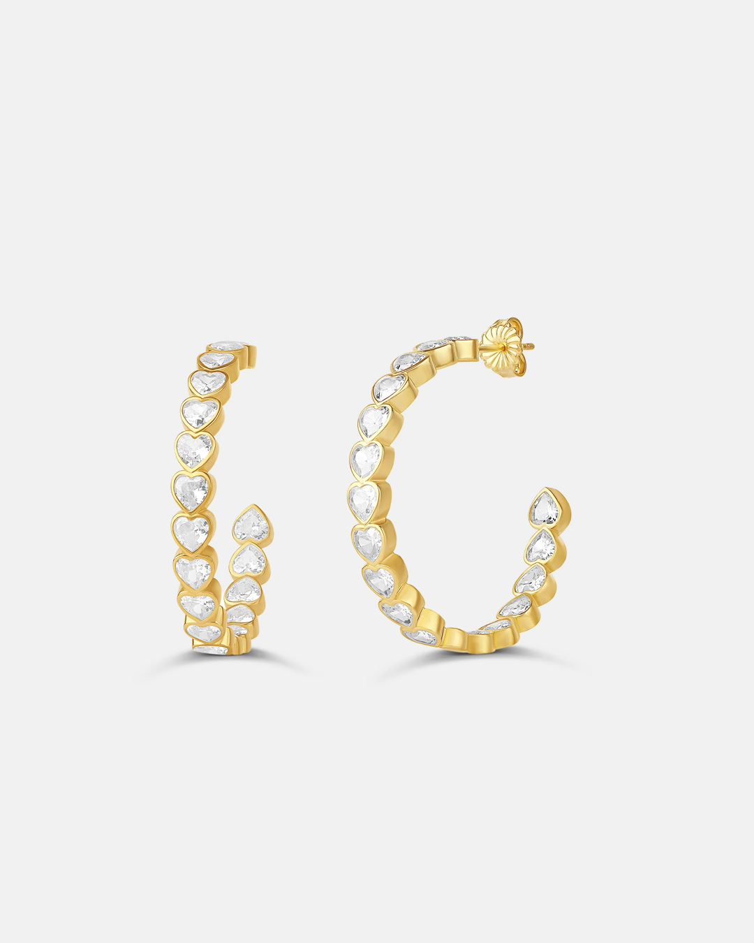 Add a little twist to your jeweler collection with these Bezel Set Heart Hoops. These heart-shaped hoops offer a contemporary and stylish alternative to traditional heart hoop earrings. Their perfect size and dazzling design make them perfect for both day and night wear, and sure to elevate any look.