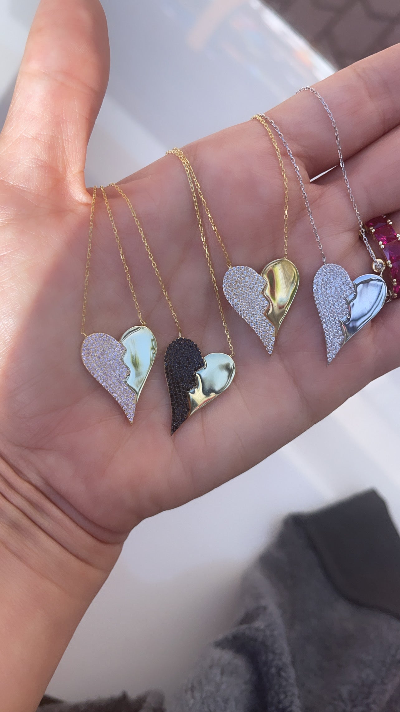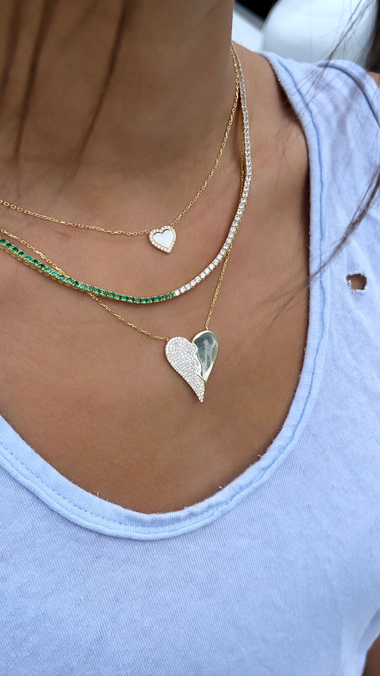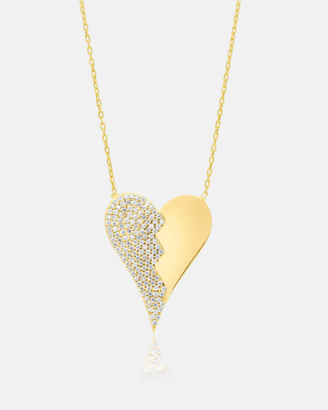 Our Half Pave Heart Necklace is the ideal combination of modernity and classic style. The half pave stone and solid metal heart pendant bring together the perfect balance of bling and sophistication. Stand out from the crowd wearing this stunning piece.
