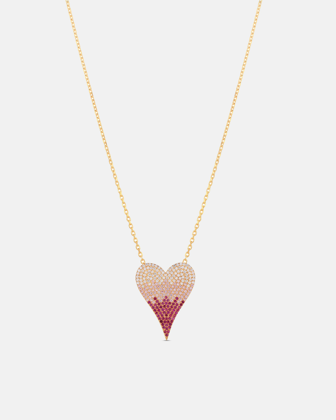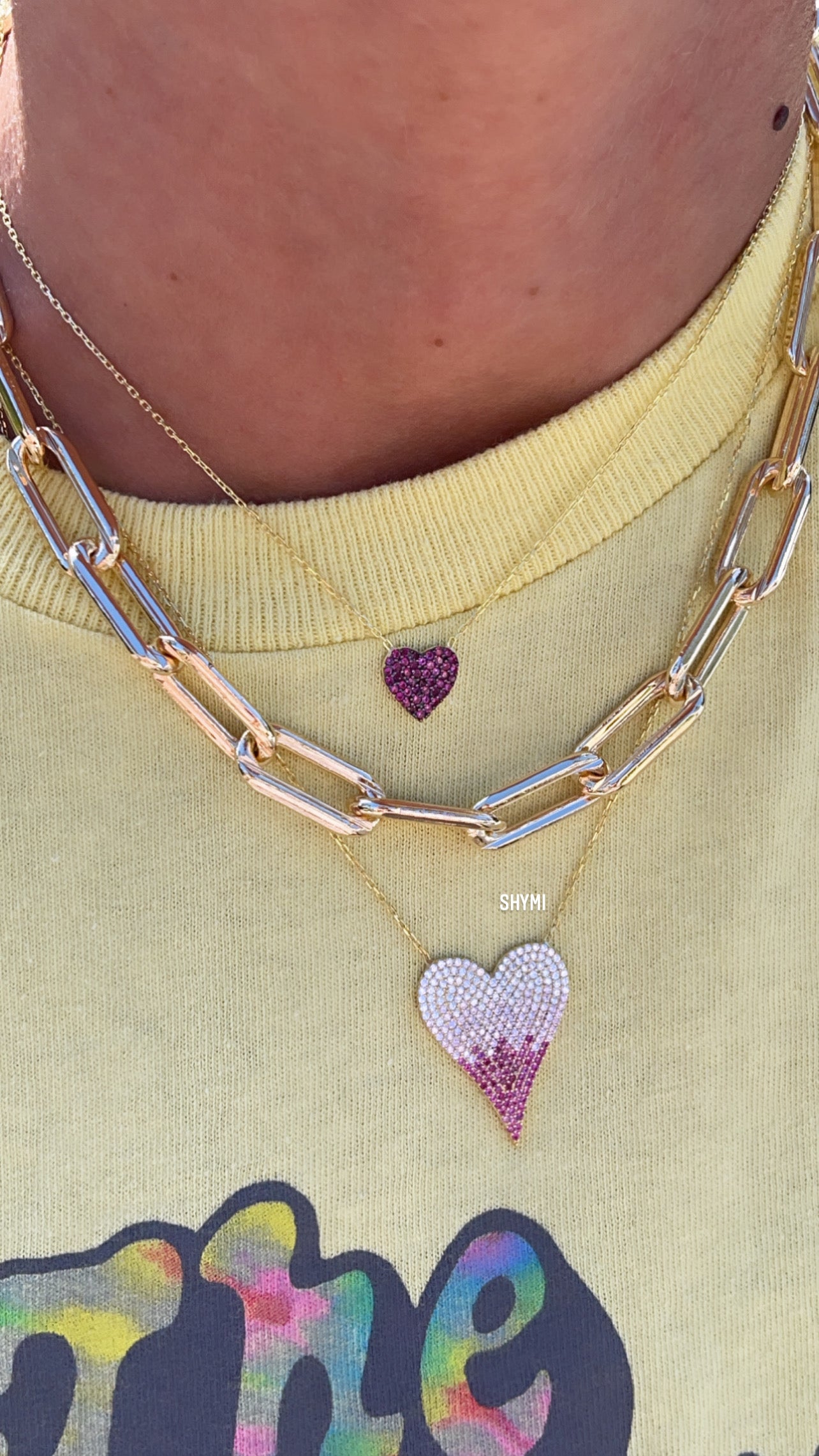 This Large Pave Ombré Heart Necklace is the perfect way to add a sophisticated touch of color to any ensemble. Its luxurious design and ombre effect is sure to make a stunning statement.