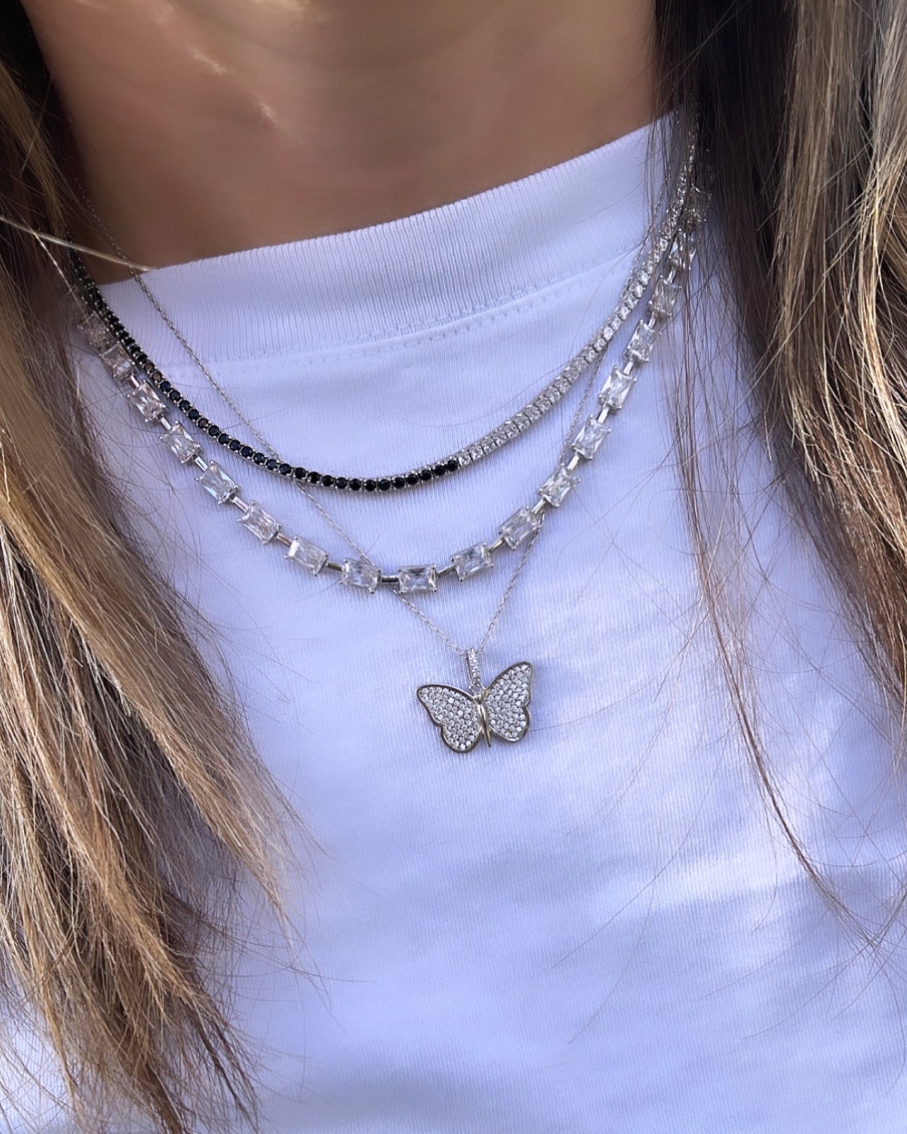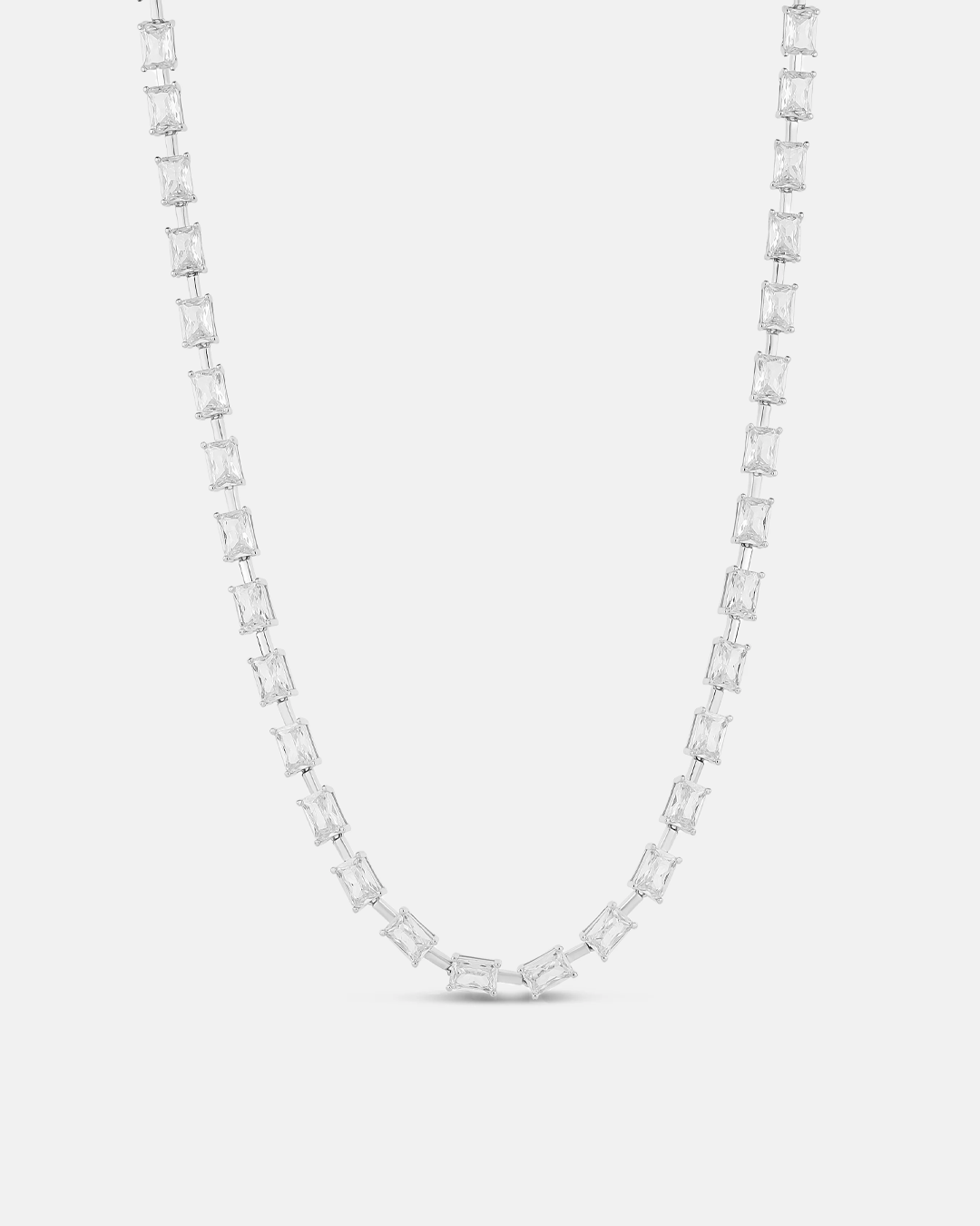 Add a touch of elegance and style to any outfit with our Emerald Shape Bar Tennis Necklace. Featuring beautiful emerald-shaped stones, separated by chic bars, this on-trend necklace is perfect for any occasion. Elevate your look for day or night with this stunning piece.