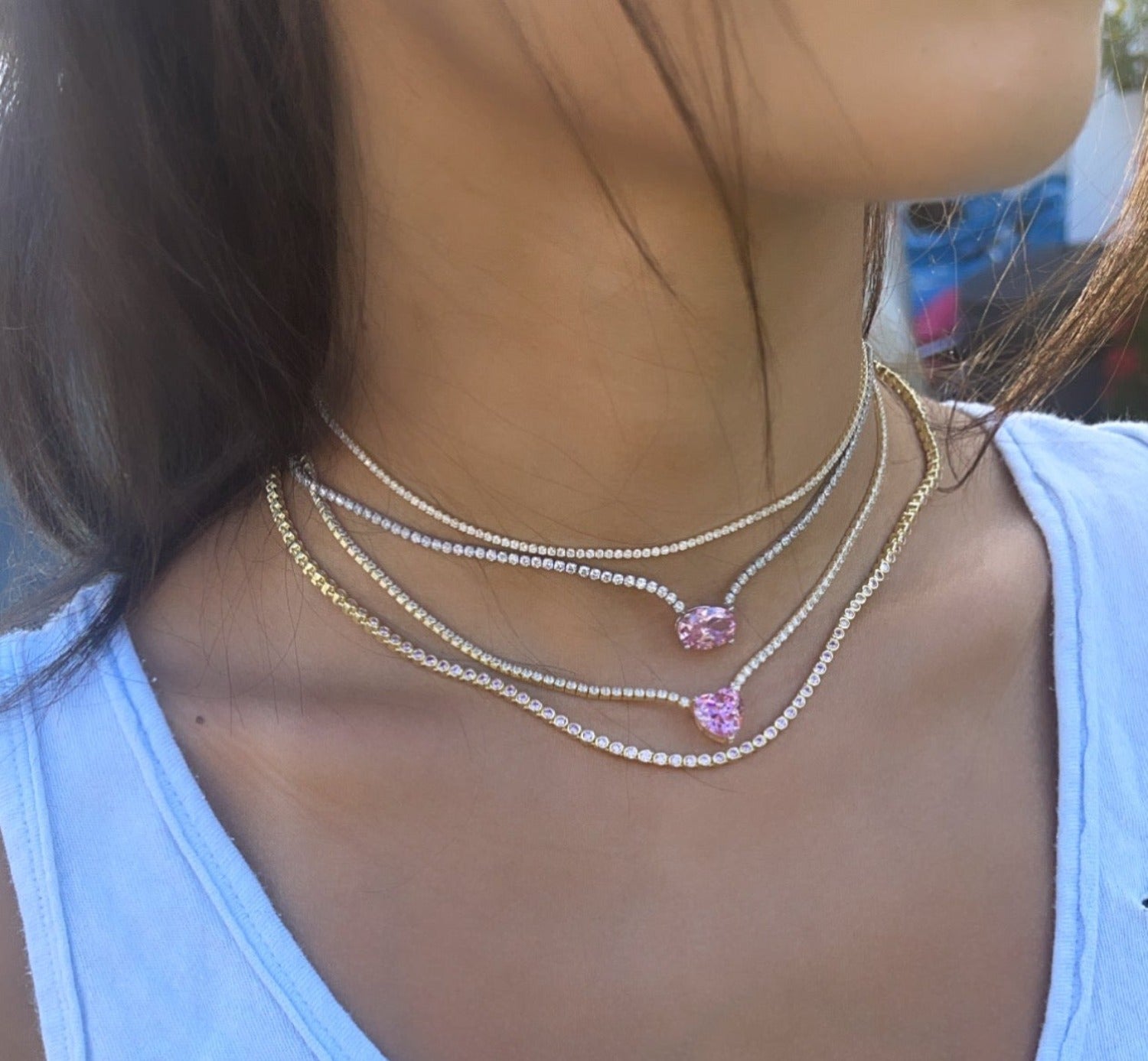 We are in love with this insanely gorgeous Fancy Oval Tennis Necklace. It is simply stunning on its own or can be layered for the perfect addition to your SHYMISTACK.