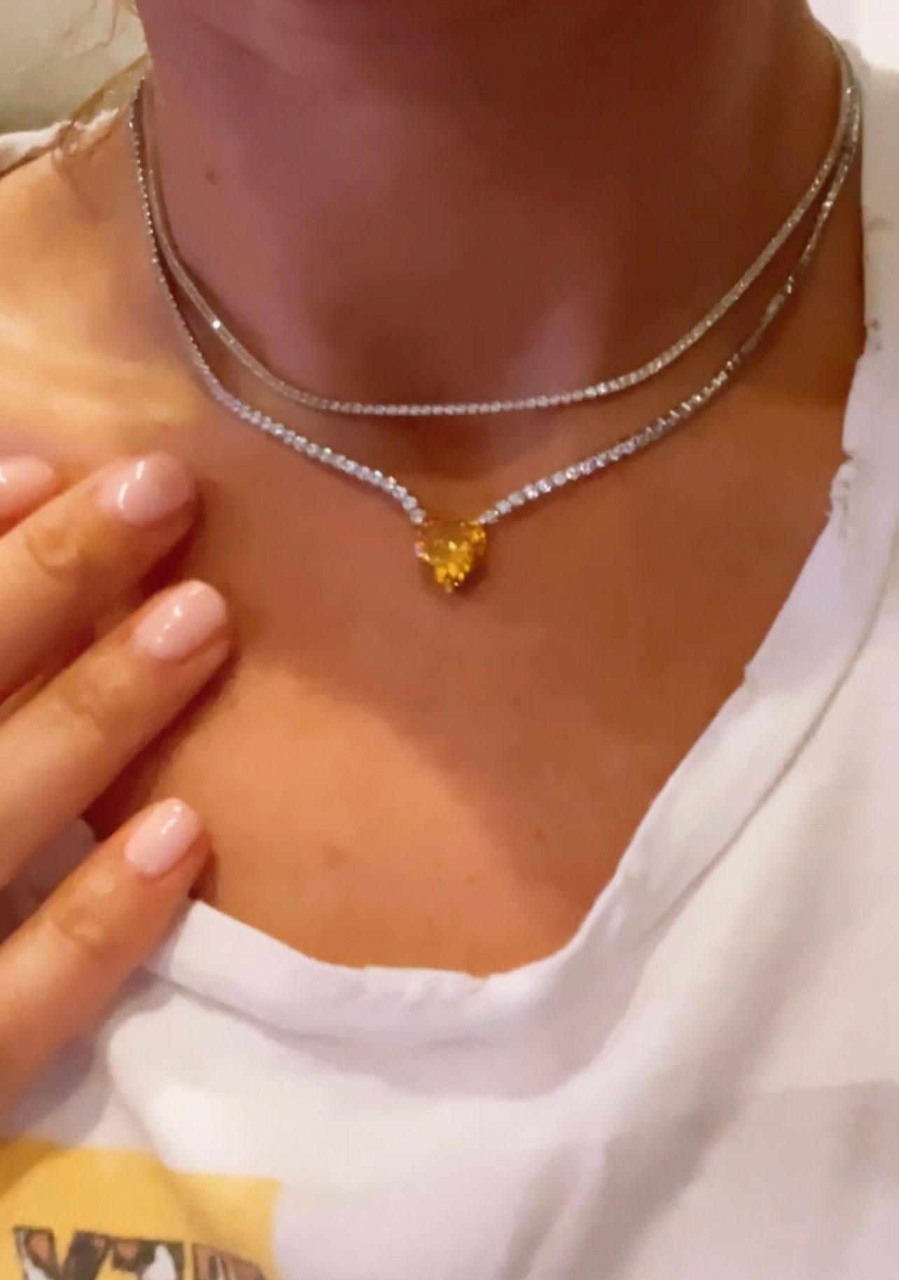 We are in love with this insanely gorgeous Fancy Heart Tennis Necklace. It is simple stunning on its own or can be layered for the perfect addition to your SHYMISTACK.