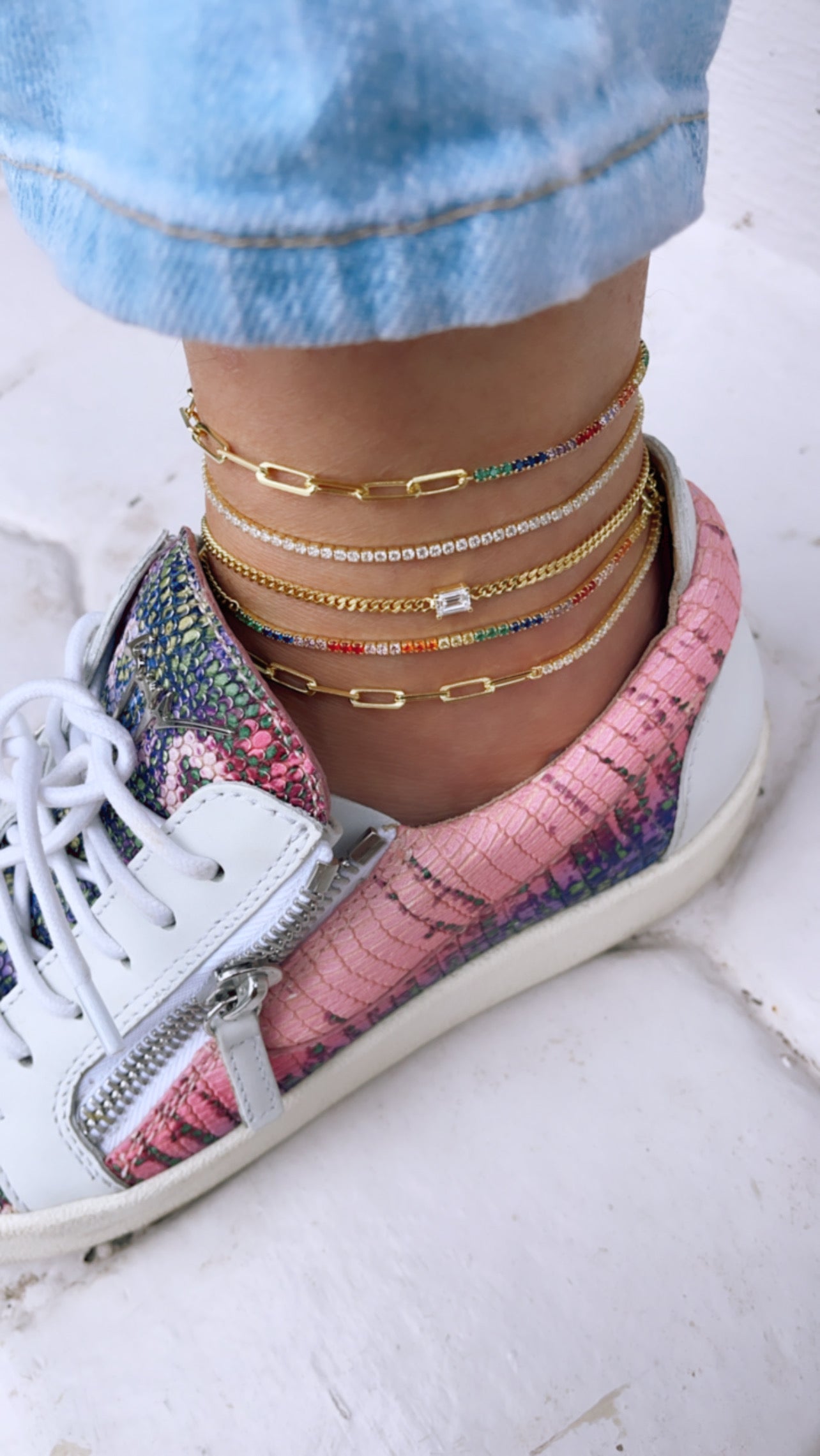 This anklet is stunning! This half rainbow tennis and half Cuban anklet is the perfect anklet