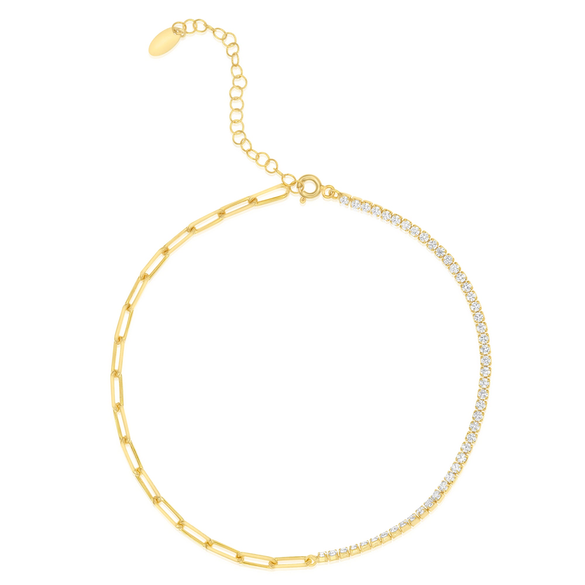 Half Tennis Half Paper Clip Anklet