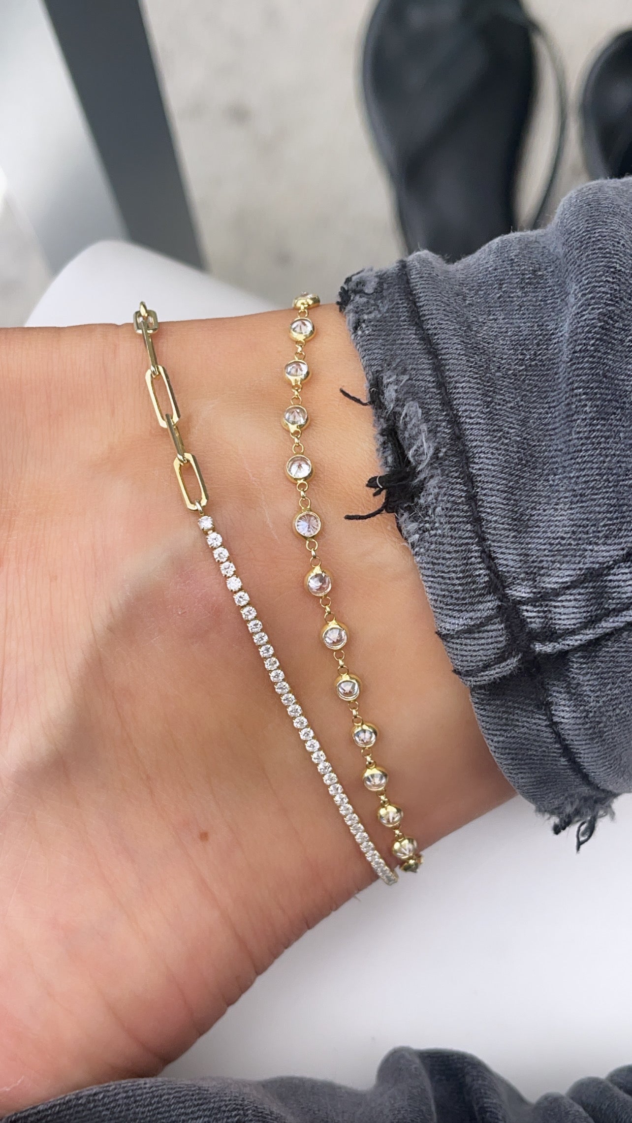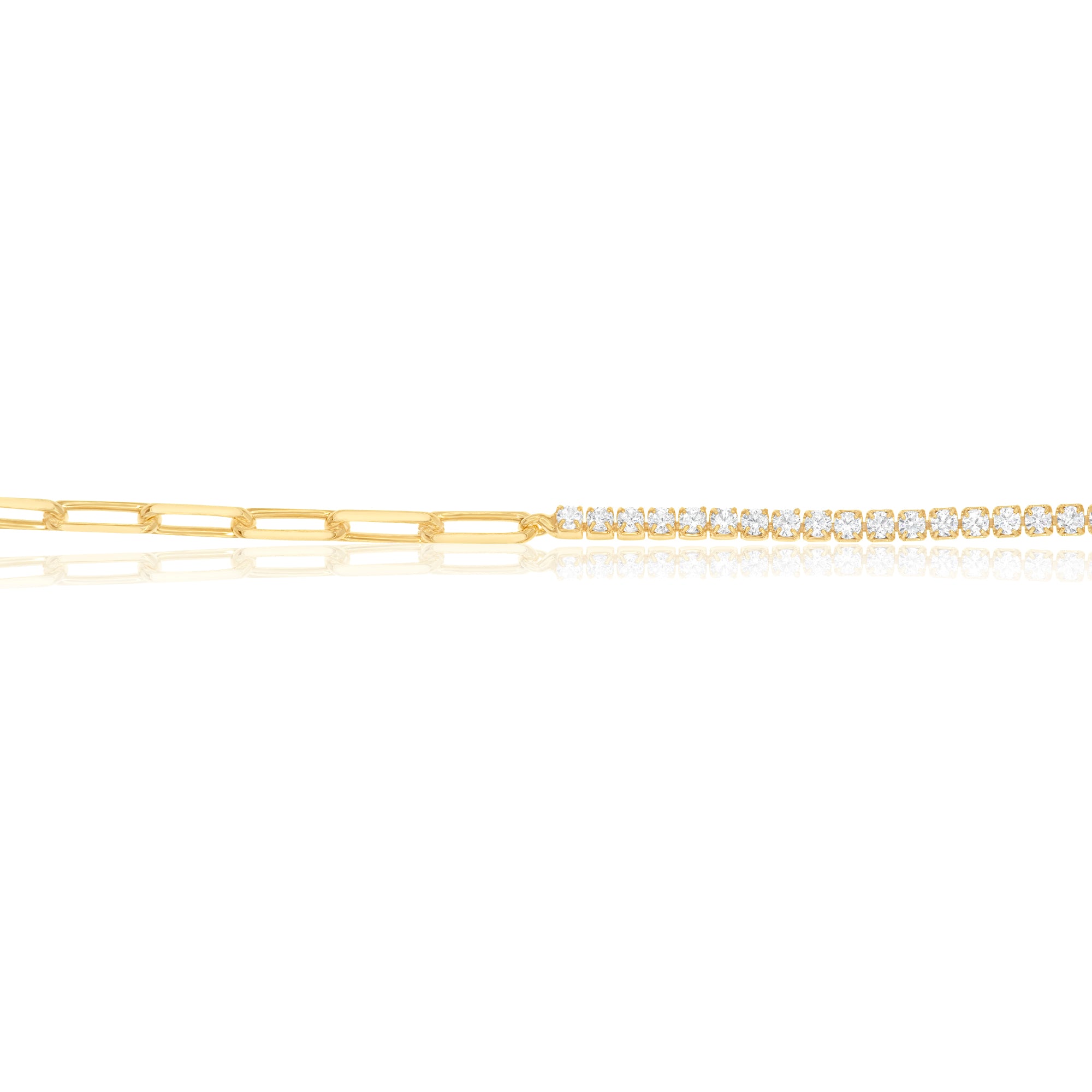 This Half Tennis Half Paper Clip Anklet is perfect for everyday wear. Effortlessly stylish, it features a minimalistic half paper clip and half tennis design that's dainty and chic. The perfect accessory to make any look stand out.