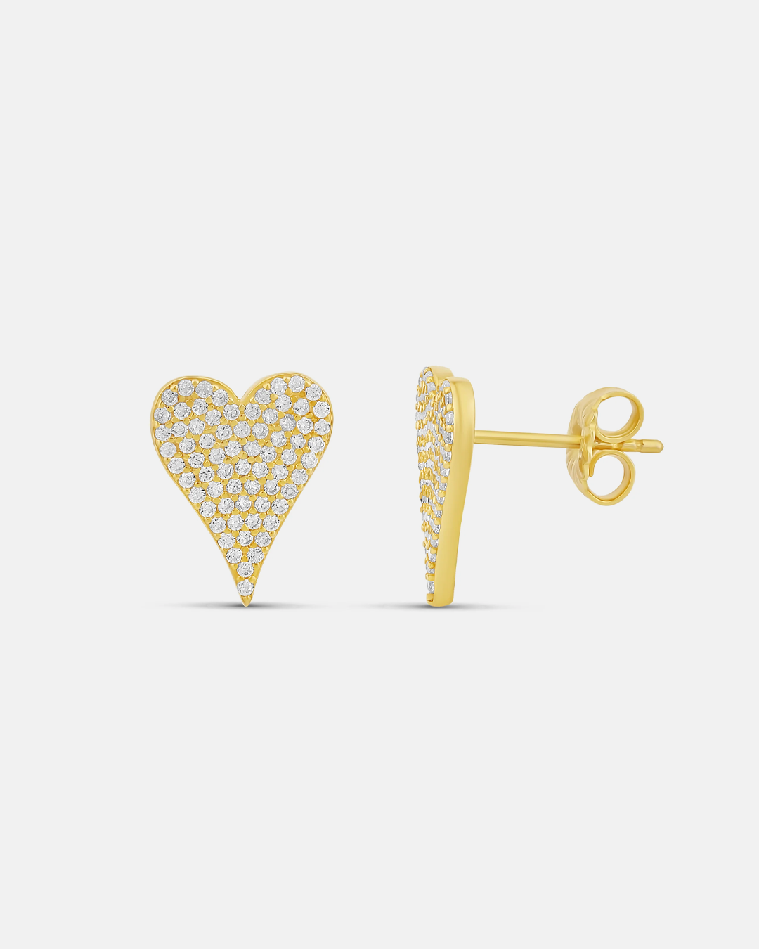These Elongated Large Pave Heart Studs combine elegance and glamour with their stylish design. Crafted in a classic elongated shape, they are encrusted with sparkling crystal accents, making them a timeless choice for any occasion. Perfect for adding some extra glitz to any outfit.