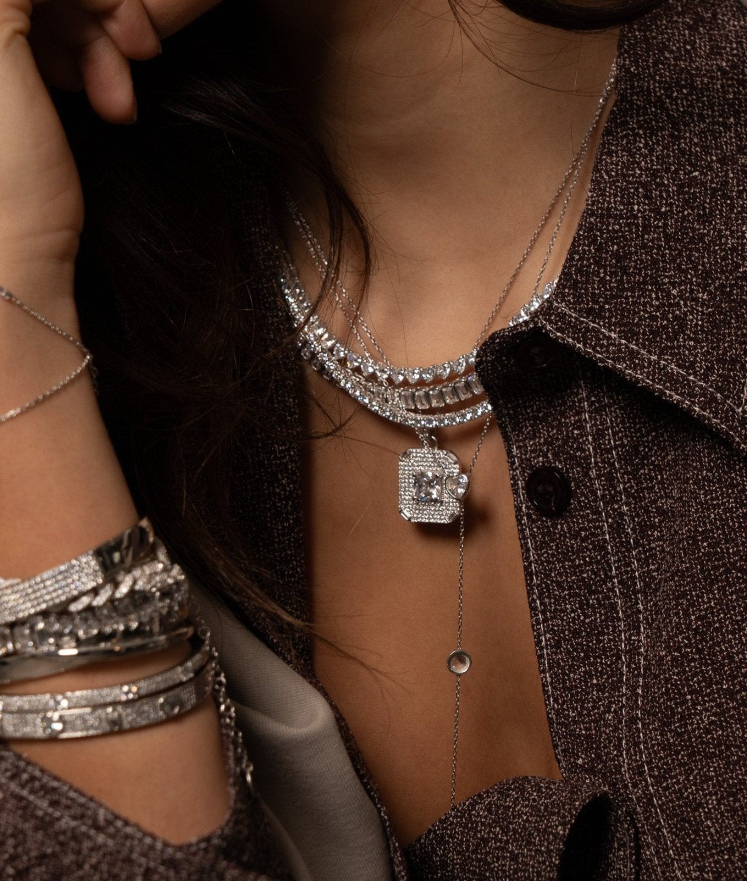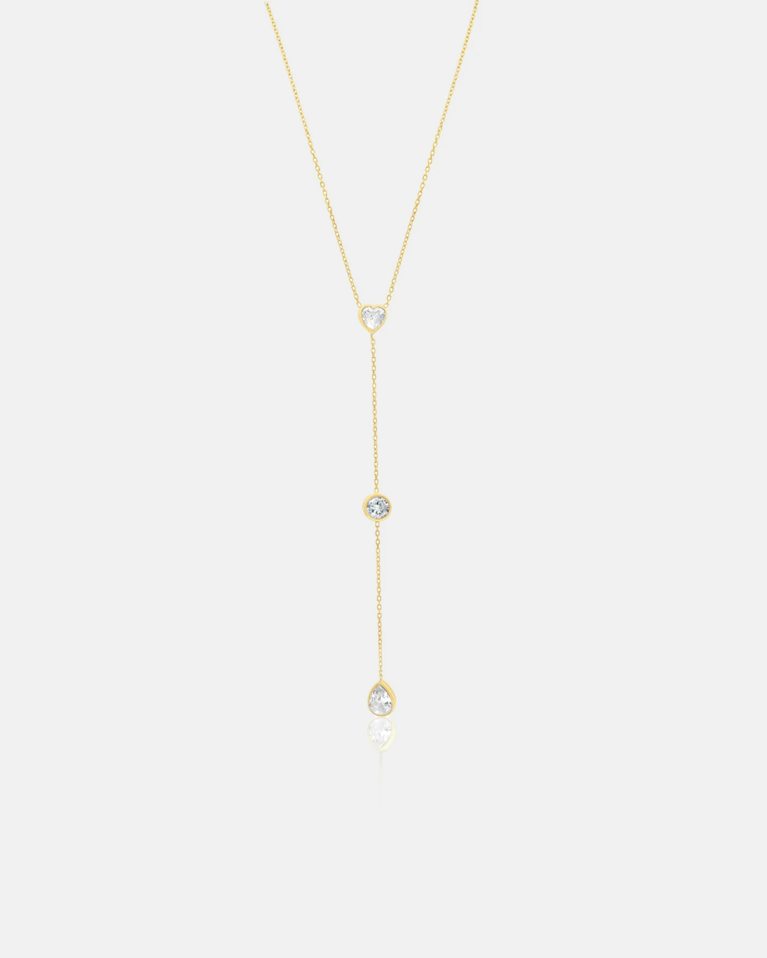 Elevate your style with our Fancy Shape Lariat. This stunning piece features a heart, round, and pear shaped stone, offering an elegant and on-trend look. Perfect for any occasion, this lariat adds a touch of sophistication to any outfit. Upgrade your wardrobe with this gorgeous accessory.