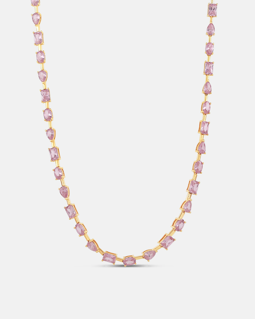 Introducing the Multi Shape Bar Tennis Necklace, a stunning addition to any jewelry collection. This necklace features a unique design with multiple shapes separated by elegant bars. Perfect for both special occasions and everyday wear, it adds a touch of glamour to any outfit.