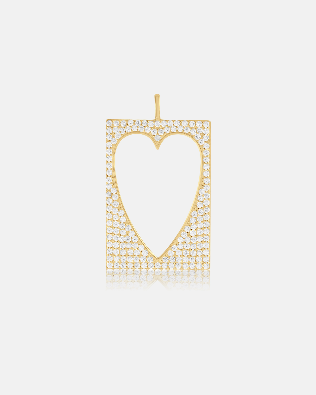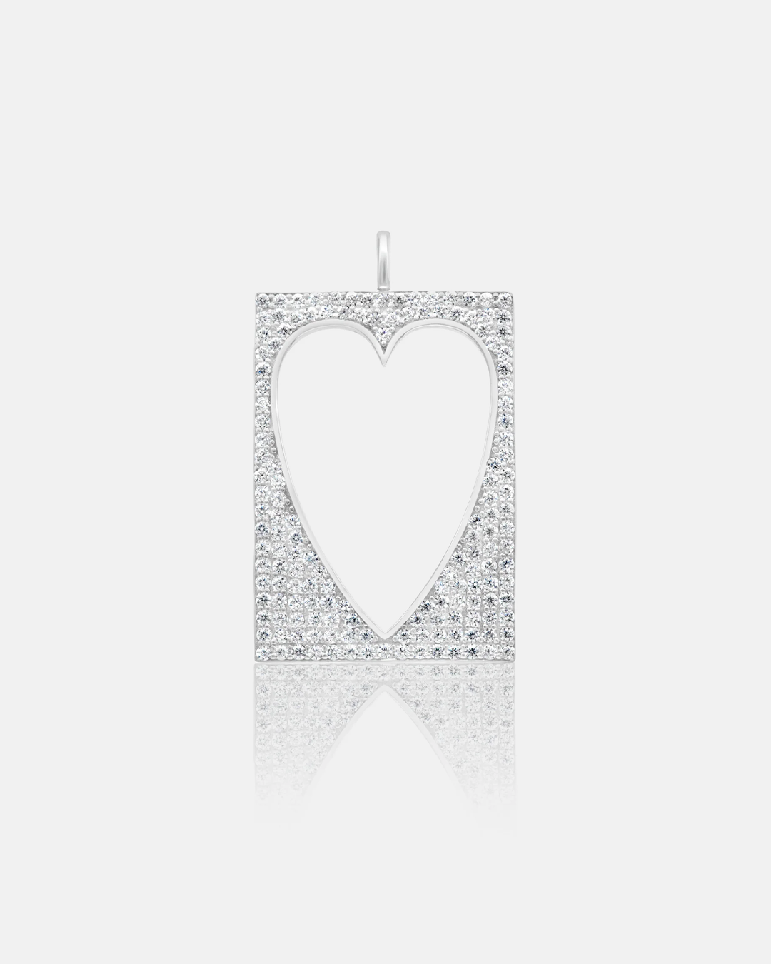 Add a touch of elegance to your accessory collection with our Open Pave Heart Tag. This gorgeous dog tag charm features a cut out heart pendant and can be easily looped onto any chain. For a bolder look, pair it with our Charm Connector to wear on a thicker chain and add multiple charms. Can fit on a 3mm paper clip chain.