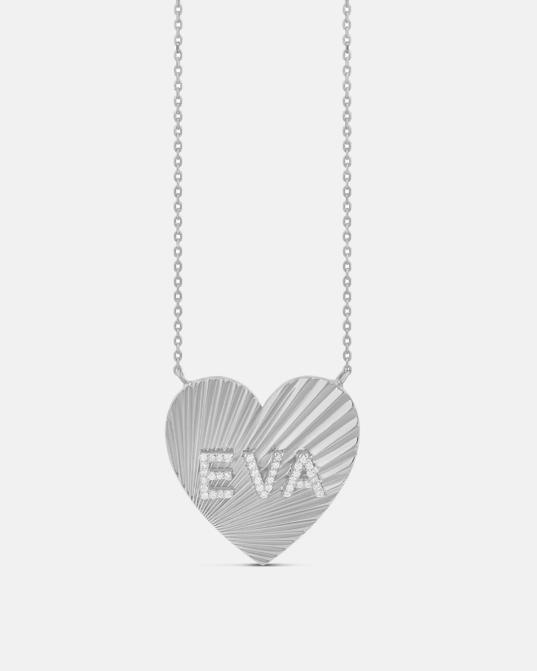 Personalized Fluted Pave Heart Stationed Necklace