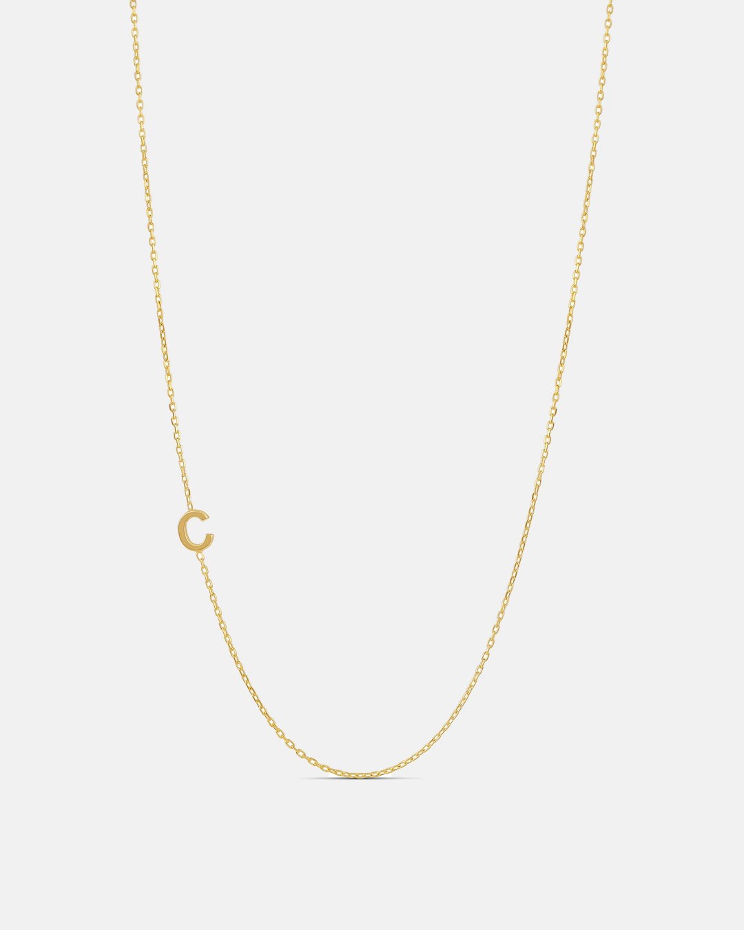 Elevate your style with this Initial Side Necklace, designed to add a subtle yet chic touch to any outfit. Featuring a sleek side placement of your chosen initial, it offers a unique way to showcase your personality. Crafted with attention to detail, this necklace complements both everyday looks and special occasions effortlessly.