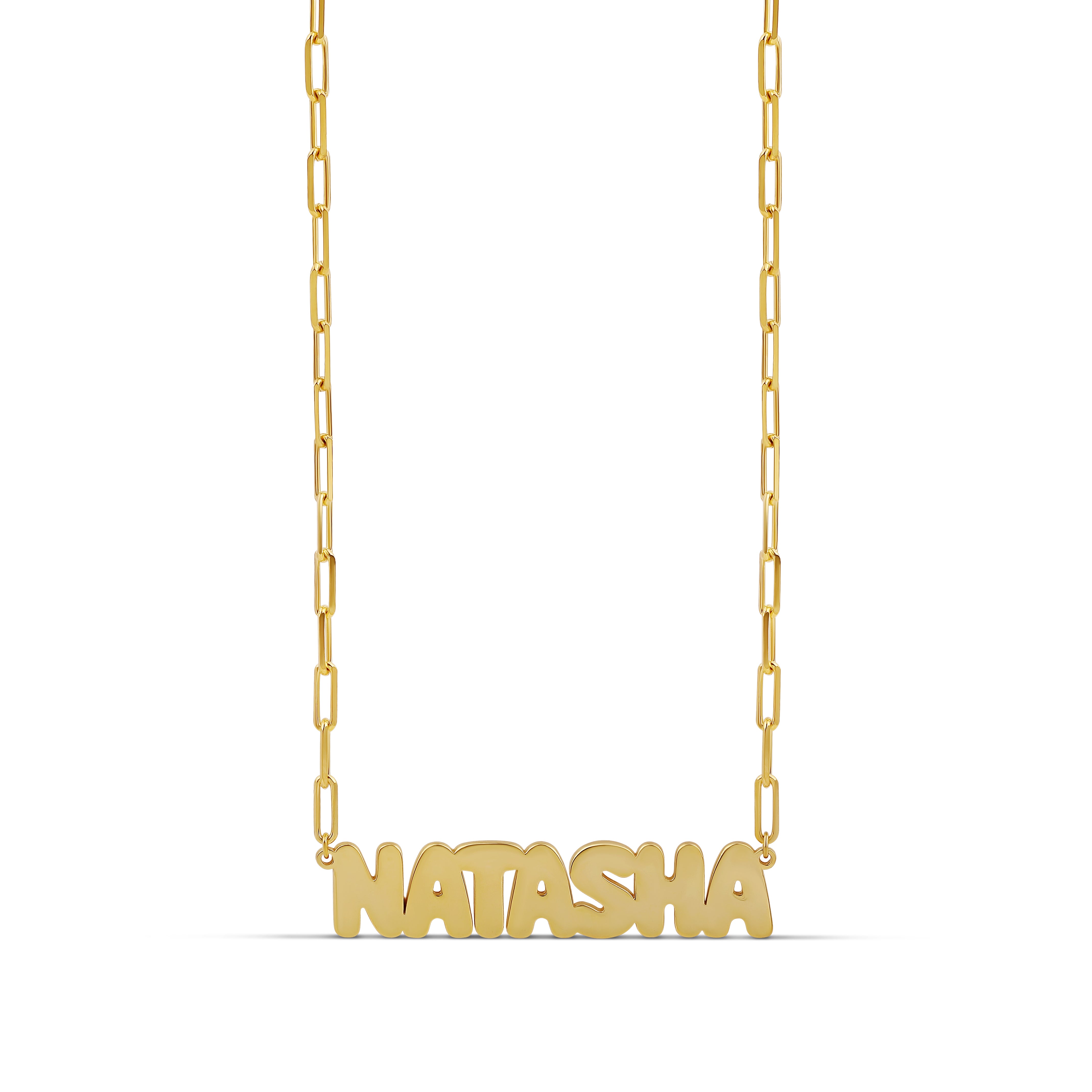 Add a playful touch to your jewelry collection with this Personalized Bubble Letter Name Necklace. Featuring bubbly, fun letters strung on a trendy paper clip chain, it’s a charming way to showcase your name or a special word. Lightweight and customizable, this necklace makes a delightful everyday accessory or a thoughtful gift.