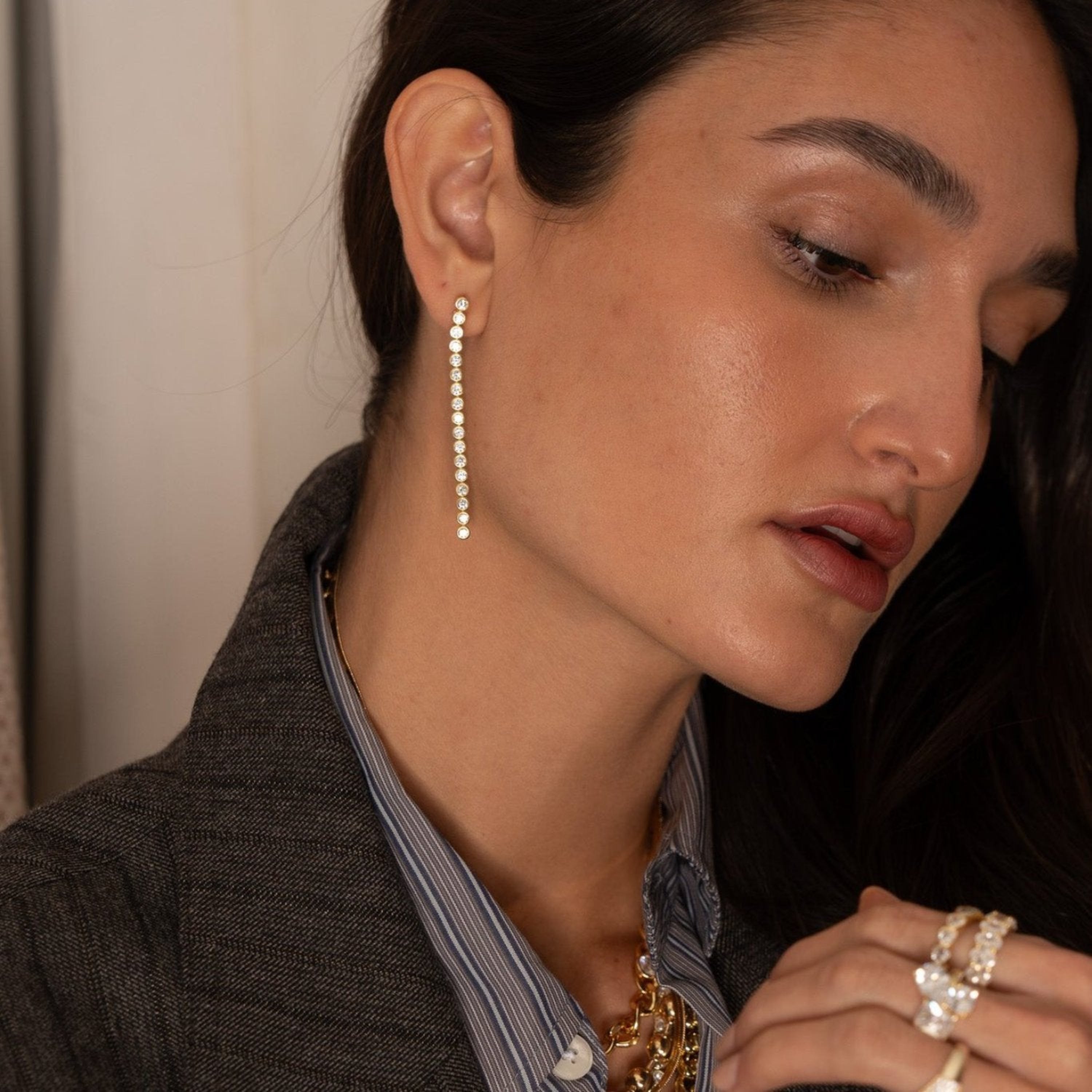 These Prong Set Tennis Drops are perfect for adding a touch of elegance to your look. Crafted with a light and comfortable design, the earrings feature gorgeous round prong set stones that sparkle and shine. Perfect for everyday glamour.