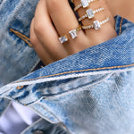 Elevate your jewelry collection with our Fancy Shape Stack Ring. On-trend and versatile, this ring can be worn alone or stacked for a statement look. With a stunning center emerald stone and sparkling pave accents, this ring is a must-have for any fashion forward individual.