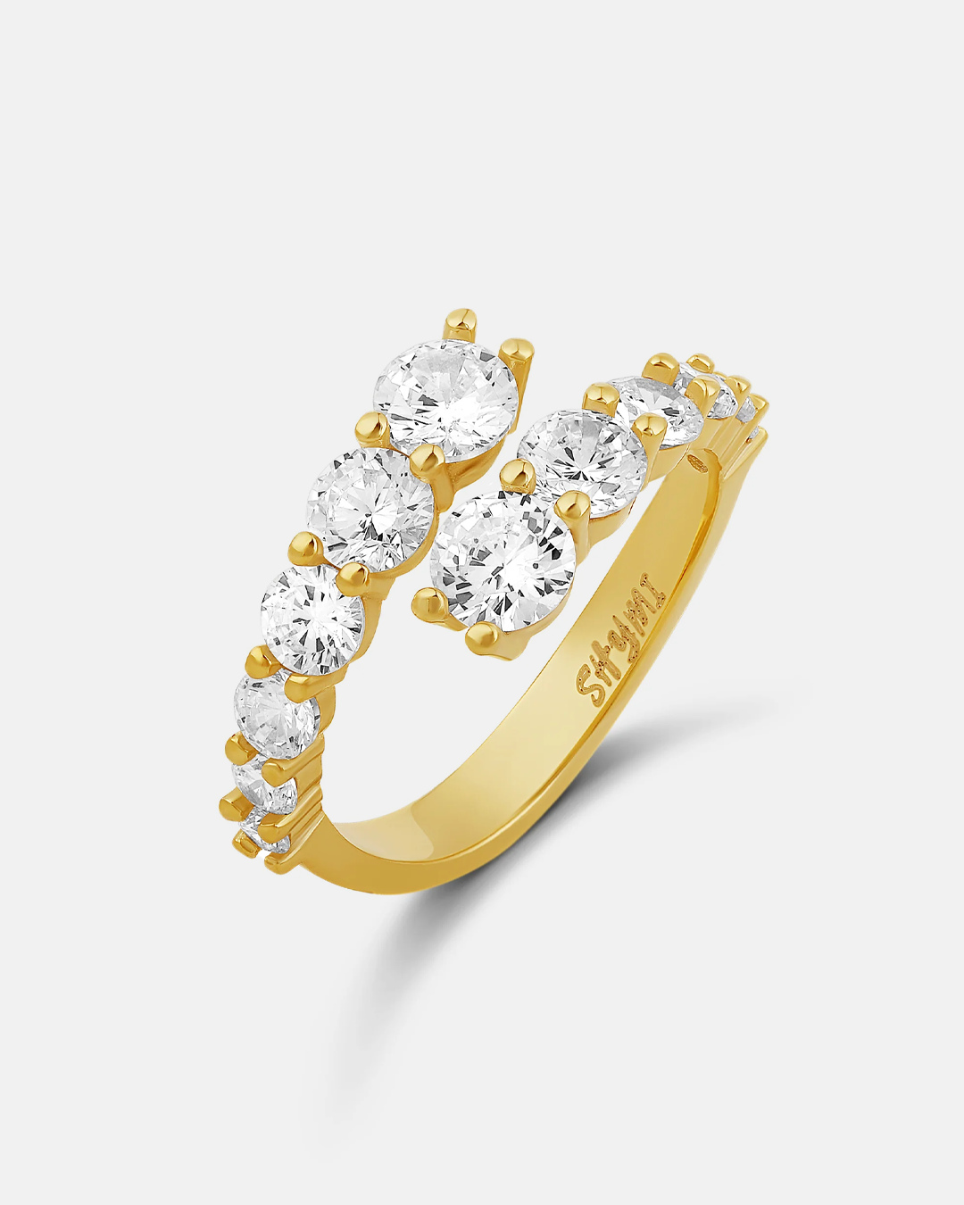 This stunning and elegant graduated round stone coil ring is the perfect addition to any jewelry collection. Whether for everyday wear or for a special evening out, this classic piece adds just the right touch of glamour to any outfit. With its versatile style, this ring is sure to become a staple in your wardrobe.