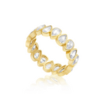 Upgrade any outfit with our gorgeous Pear Bezel Set Eternity Band. The bezel setting adds a modern touch to the classic pear shape, making it perfect for both everyday wear and special occasions. With its subtle flare, this band is not your ordinary eternity band. Elevate your style with this stunning piece. FINAL SALE!