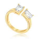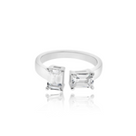 Elevate your look with our gorgeous Two Stone Cuff Stack Ring. This minimalistic yet dramatic open cuff design is versatile for both evening and daytime wear. Its sleek style adds a touch of sophistication to any outfit. Expertly crafted for a flawless finish.