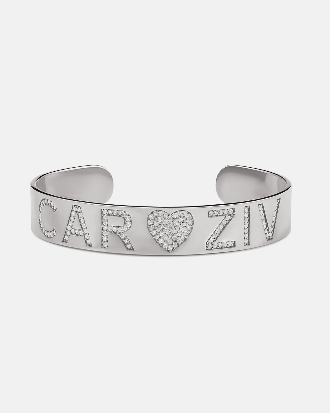 Make a lasting impression with this personalized two-name cuff, featuring a striking pave heart that boldly connects your chosen names or initials. Its unique and distinct design ensures you stand out, offering a meaningful accessory that celebrates your personal story with style and elegance.