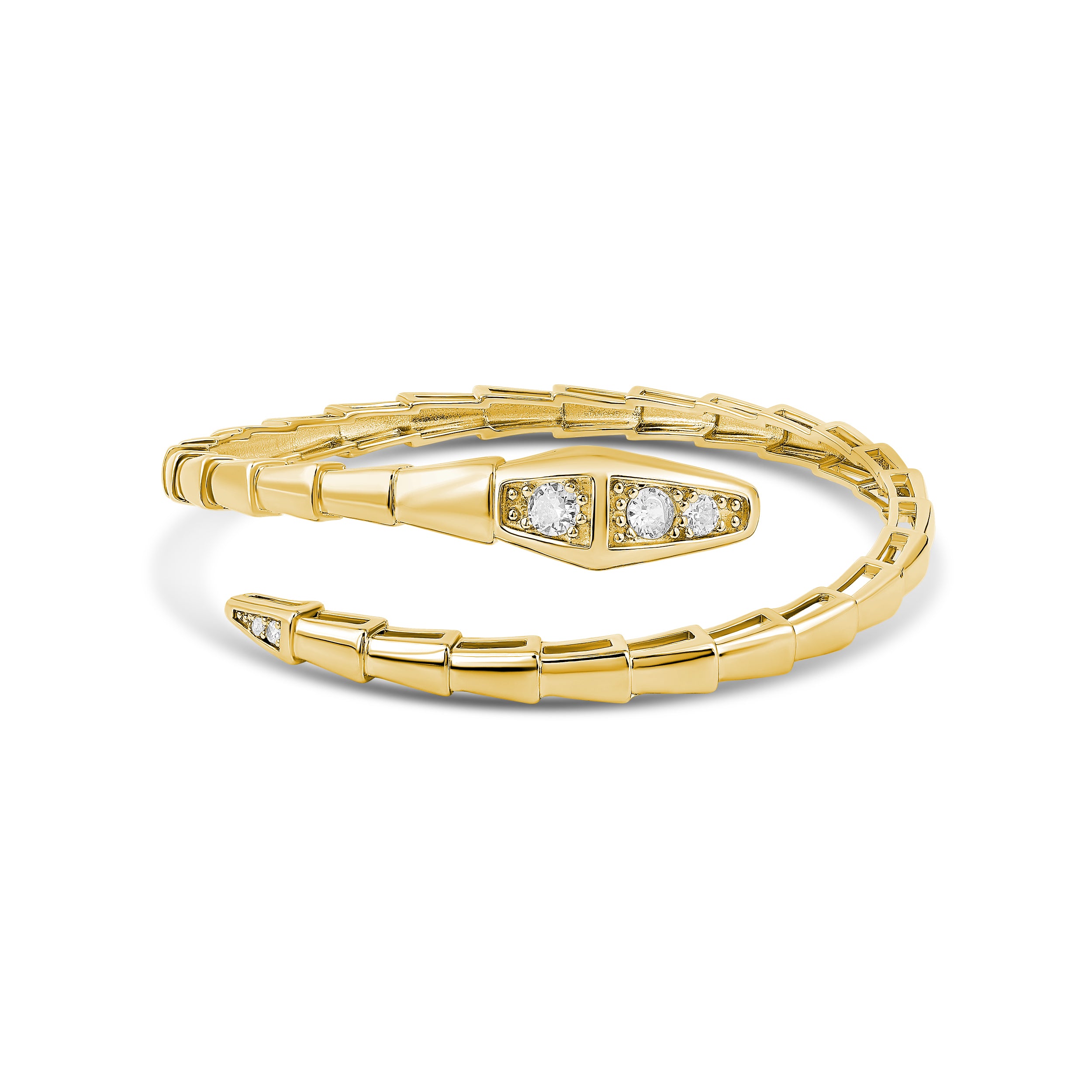 This stunning Snake Flexible Bangle is the perfect addition to any jewelry collection. Its flexible and adjustable design allows for easy wear and its pave stones all around add the perfect touch of glamour. Wear it alone for a chic daytime look or layer it for a statement evening look. A must-have for any fashionable individual.