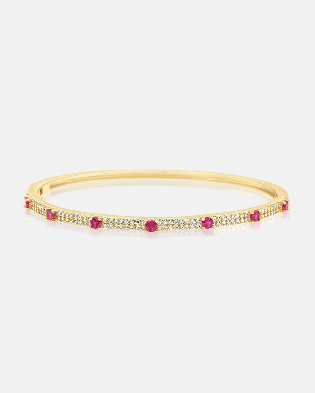 This Thin Stone Segment Bangle is a perfect addition to any outfit, providing a subtle yet eye-catching accent to your bracelet stack. Crafted with gorgeous thin colored stone segments, this two row pave bangle provides a beautiful spacer between bracelets while still allowing you to make a statement.