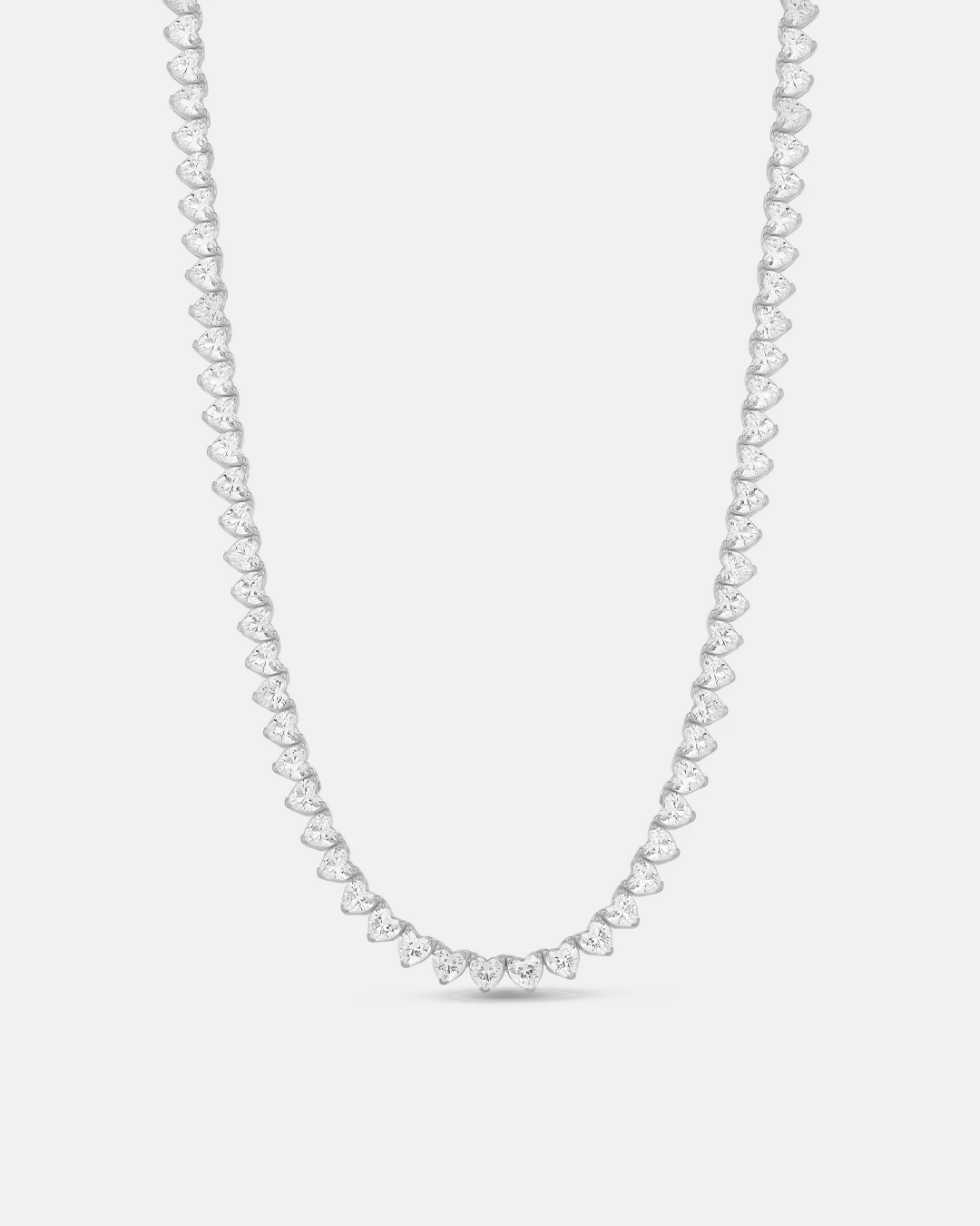 This Prong-Set Heart Tennis Necklace is the perfect way to add glamour to your look. With a classic tennis necklace design and a unique prong-set heart, it is the perfect combination of style, elegance, and charm. Perfect for anyone who loves statement necklaces, this is one look that won't go unnoticed.