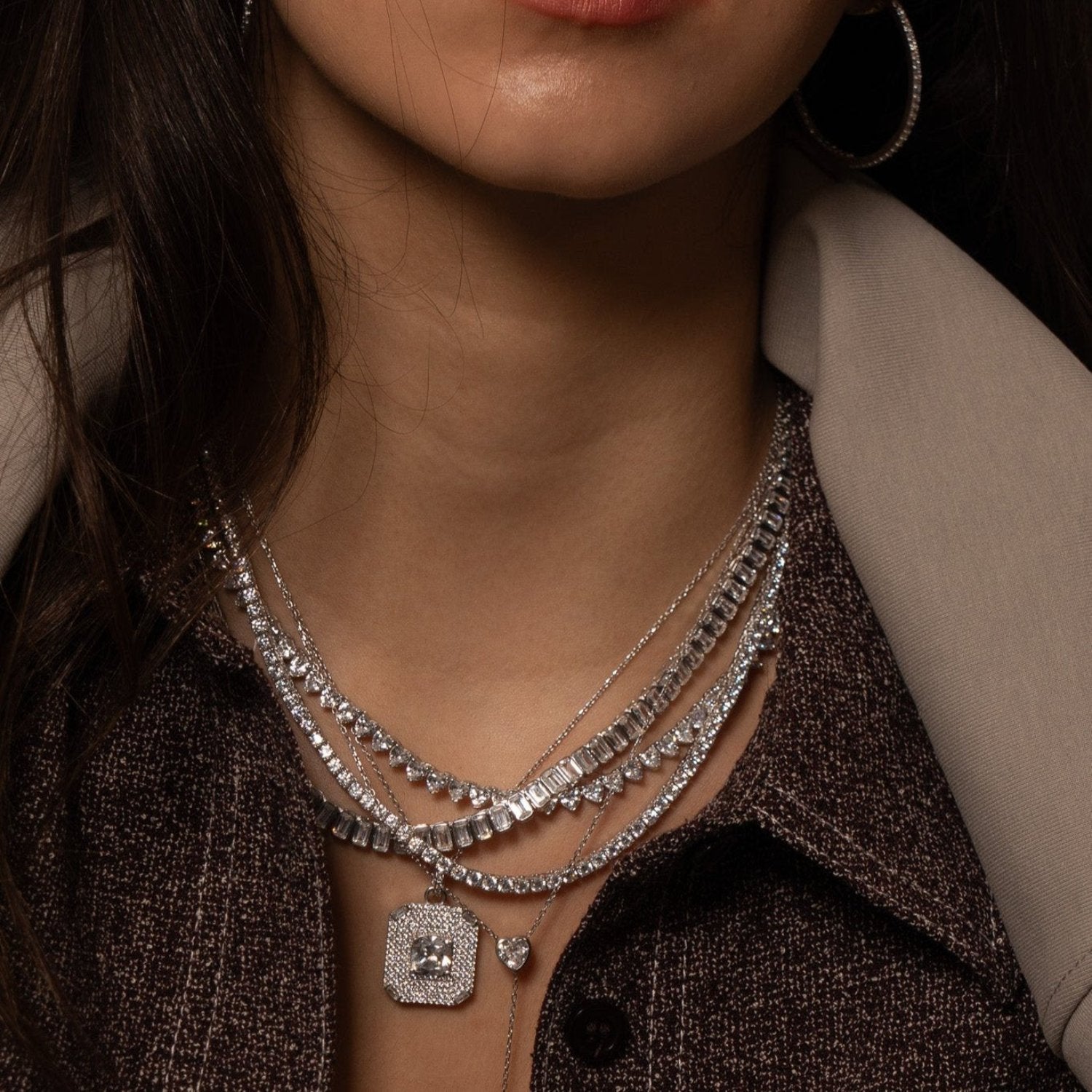 This bezel-set heart tennis necklace is the epitome of modern elegance. Its unique design adds a touch of sophistication to any outfit, whether worn on its own or layered with other pieces. Perfect for both day and night, this necklace is a must-have for any fashion-forward individual.