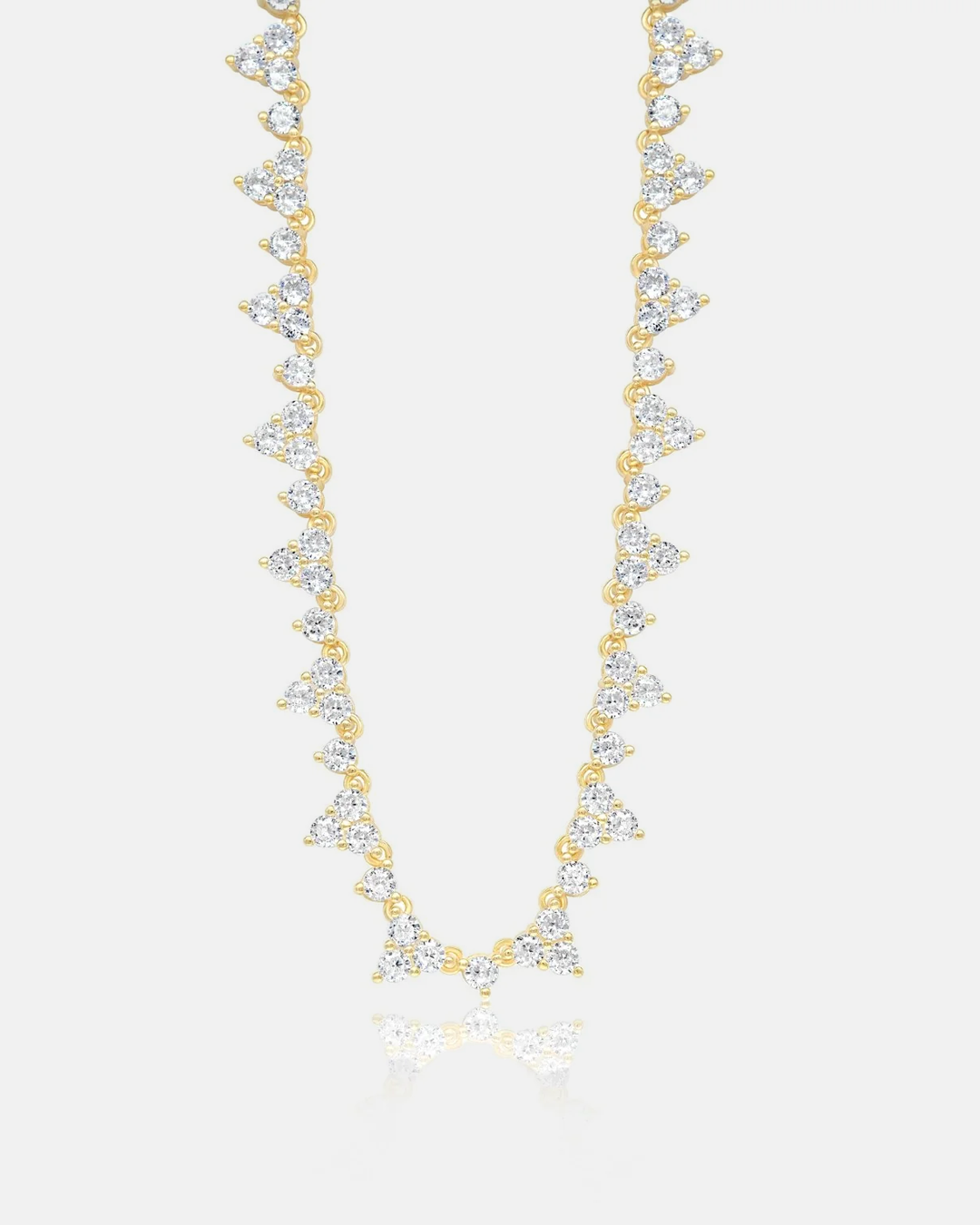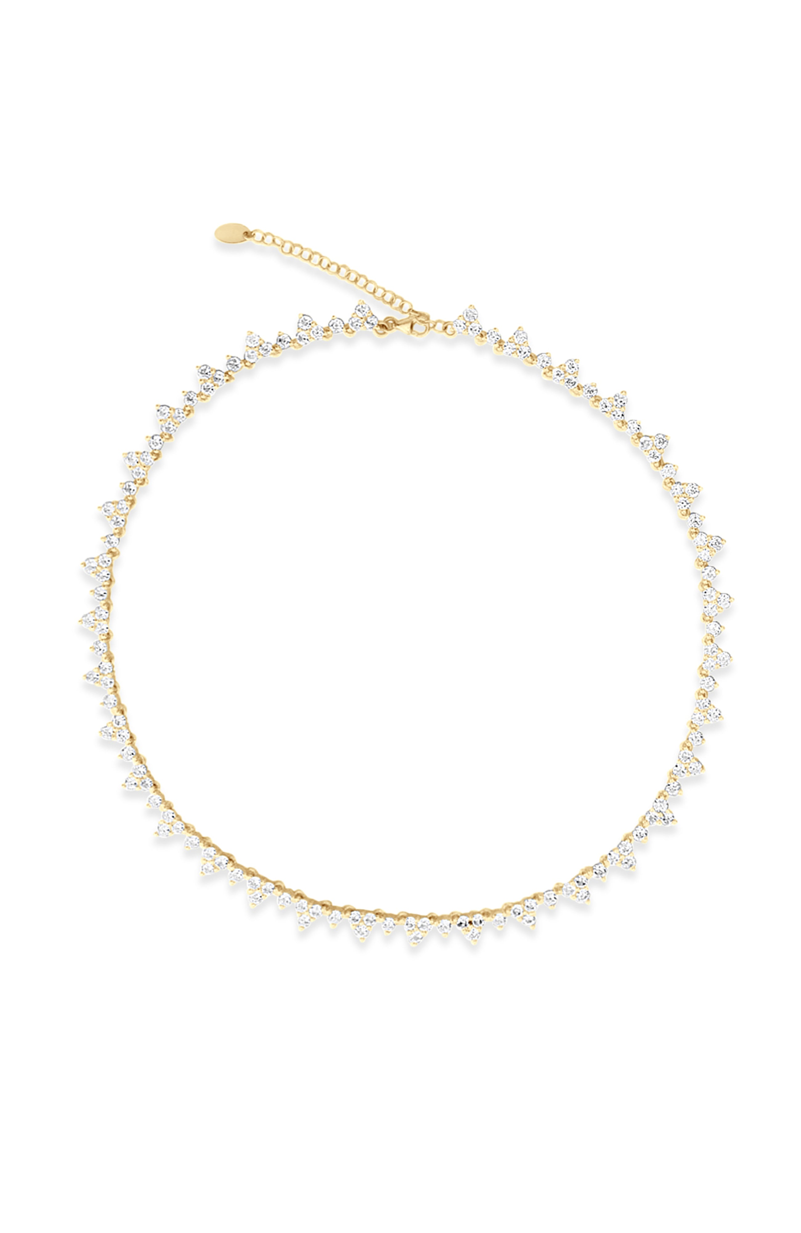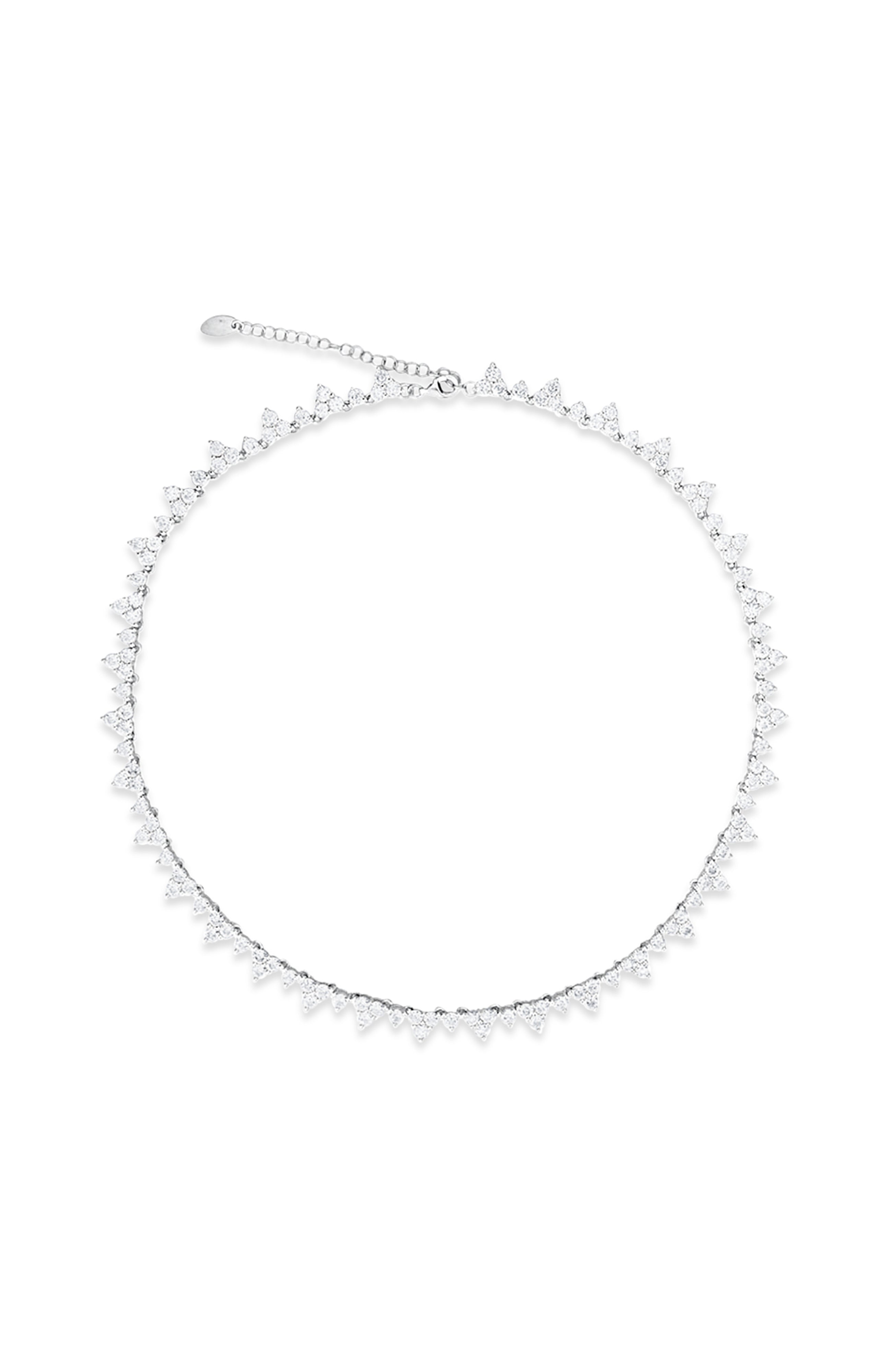 Turn heads with this stunning Cluster Tennis Necklace. Crafted with three gorgeous stones separated by a single stone, this statement necklace easily transitions from elegant evening wear to classic everyday style with a white t-shirt. Make it yours and enjoy an eye-catching, timeless look.