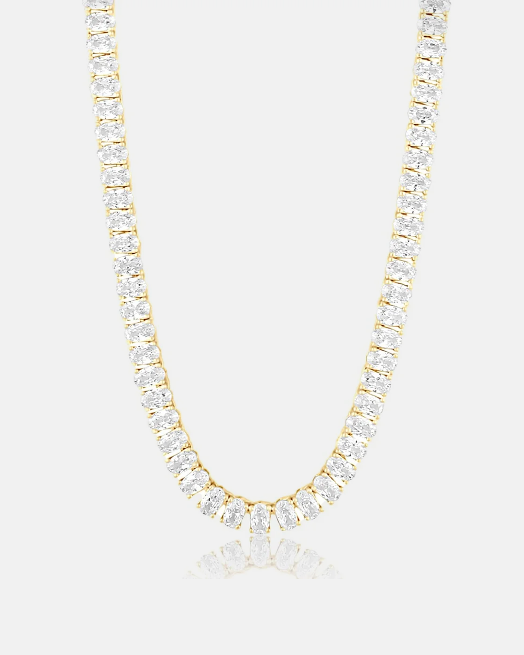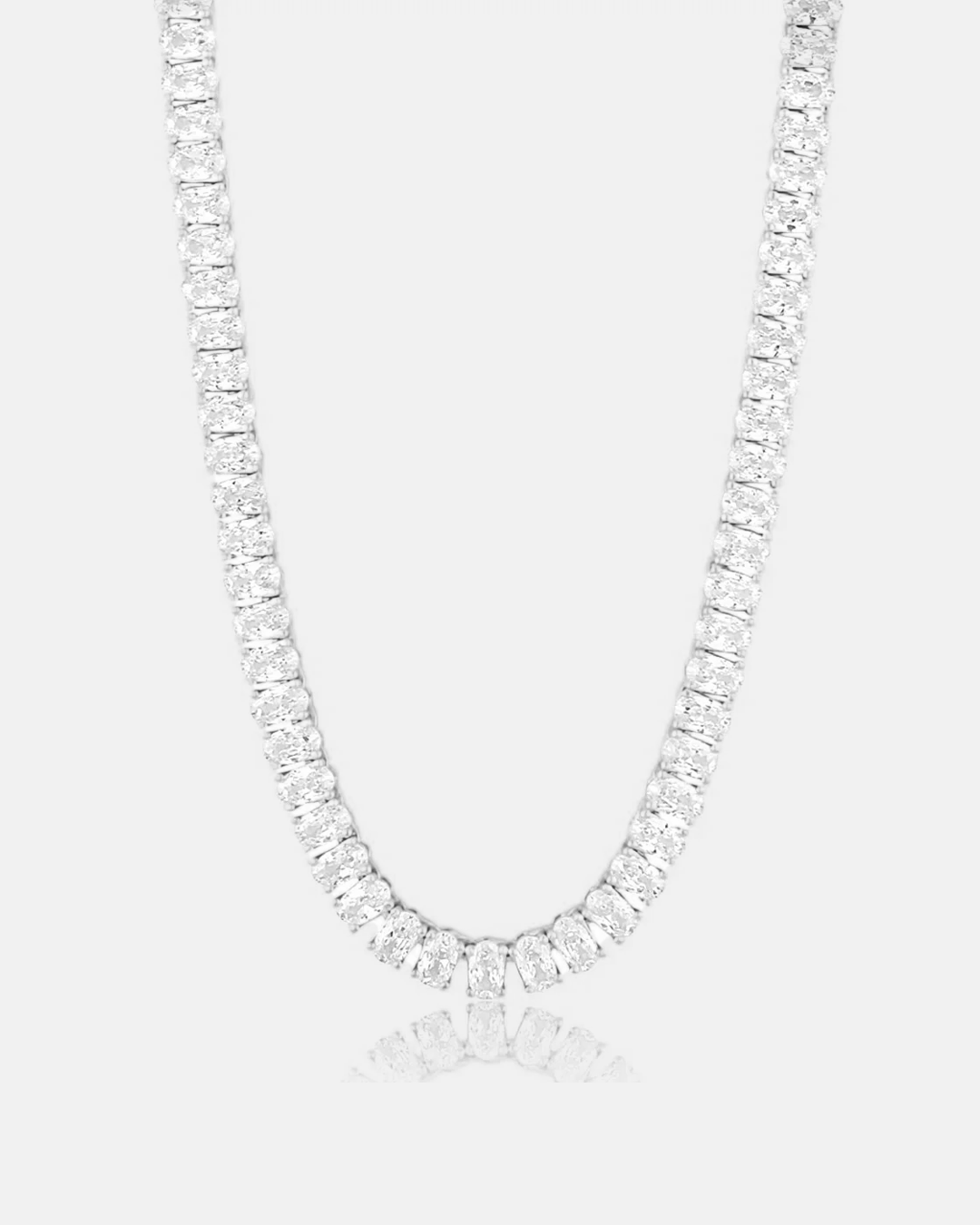 Make a statement with our stunning oval prong-set tennis necklace. This classic necklace is crafted with sparkling cubic zirconia stones set in high-quality .925 sterling silver . Perfect for adding a touch of elegance to any outfit. Ideal for special occasions or everyday wear! Sits perfectly on your neck alone or layered for the perfect stack.