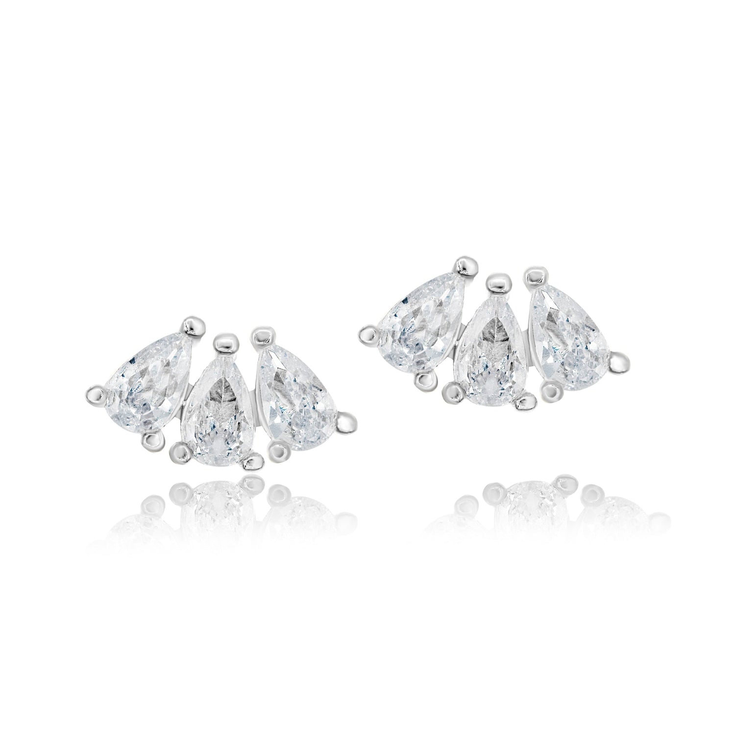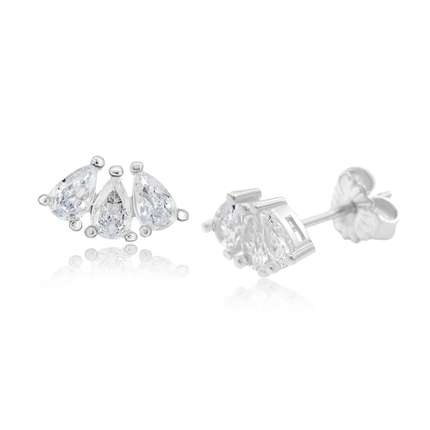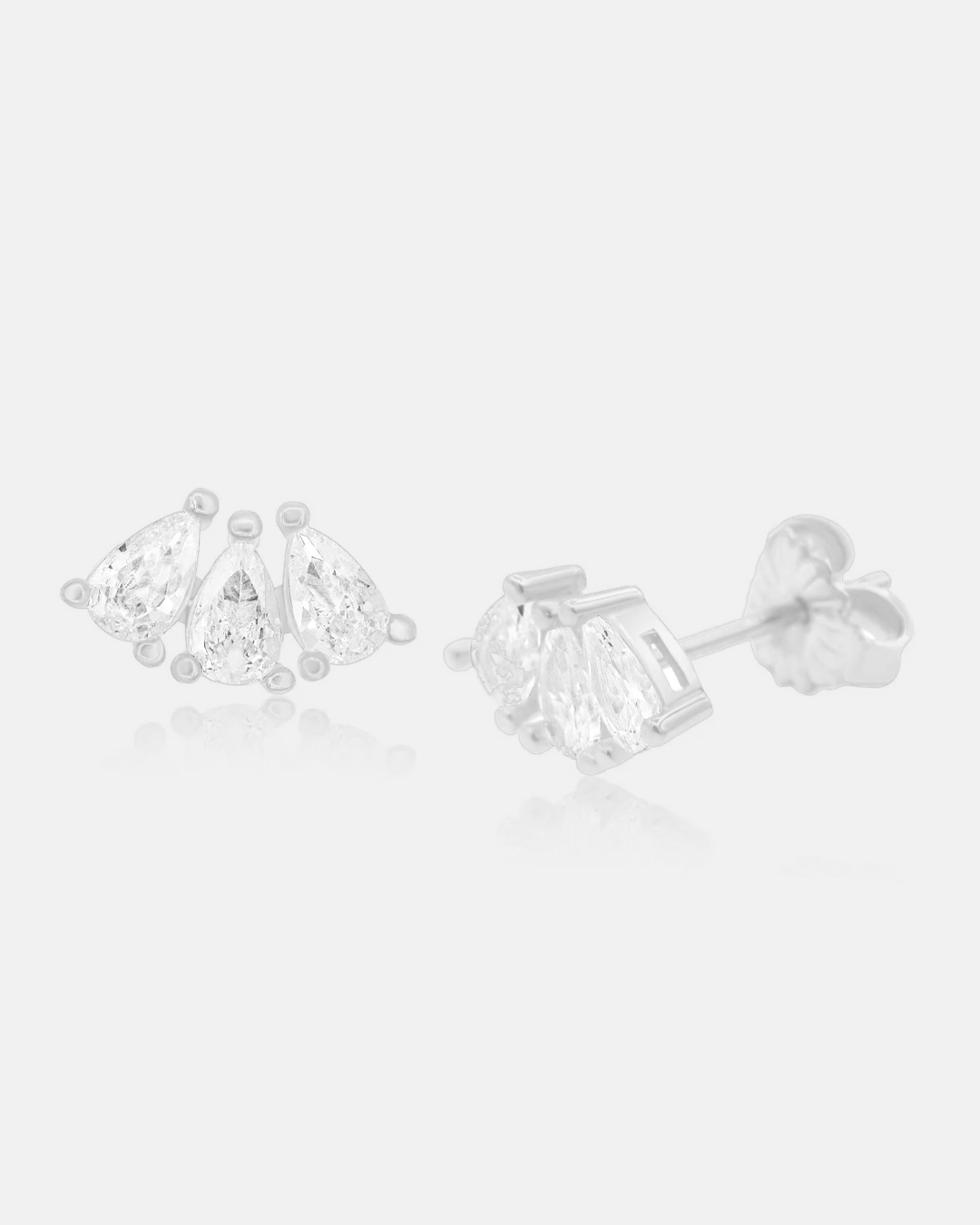 These gorgeous curved studs feature 3 pear shape stones. They act as the perfect studs rather than a traditional stud. If your looking for a unique and modern take on the classic studs these are perfect.