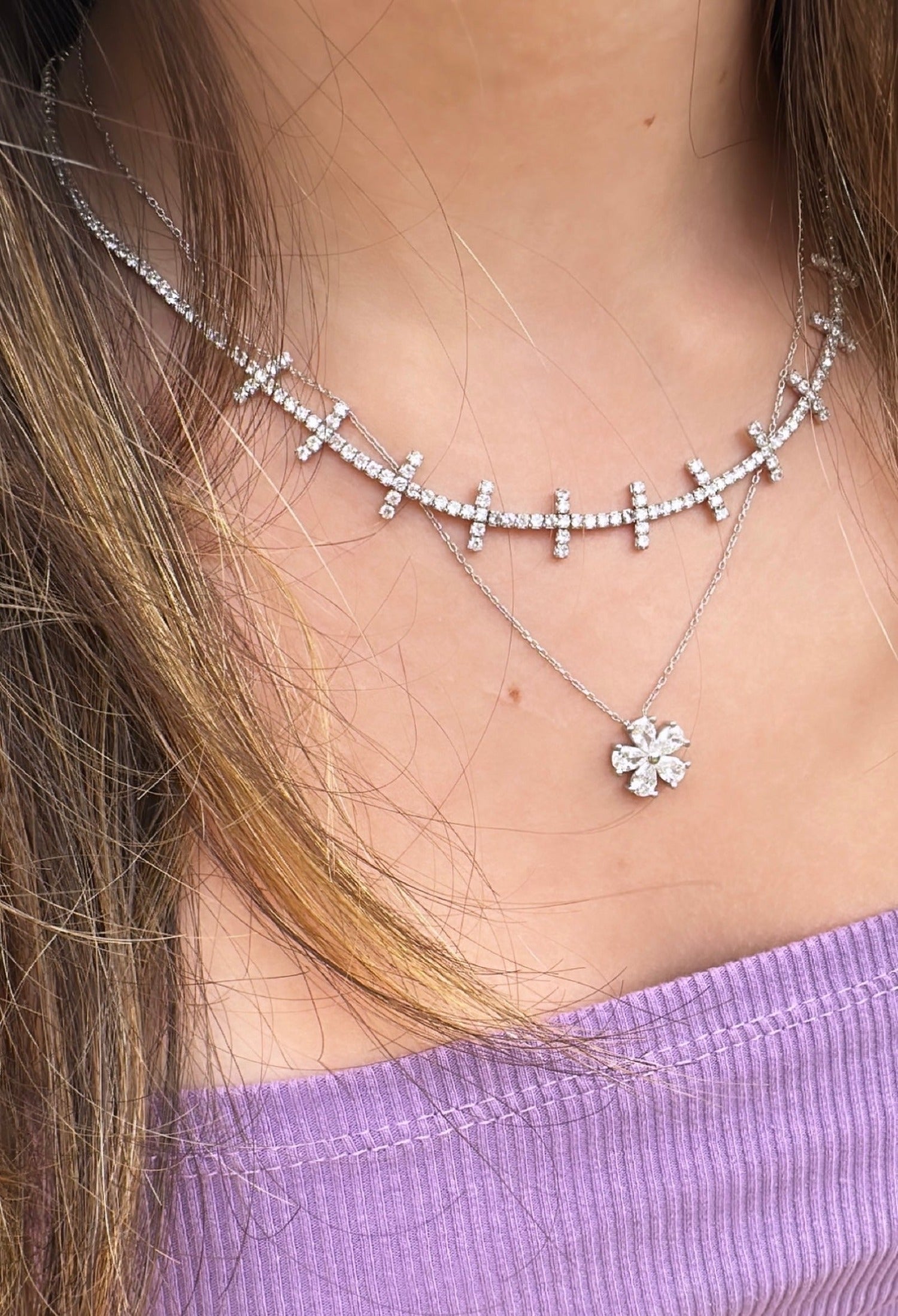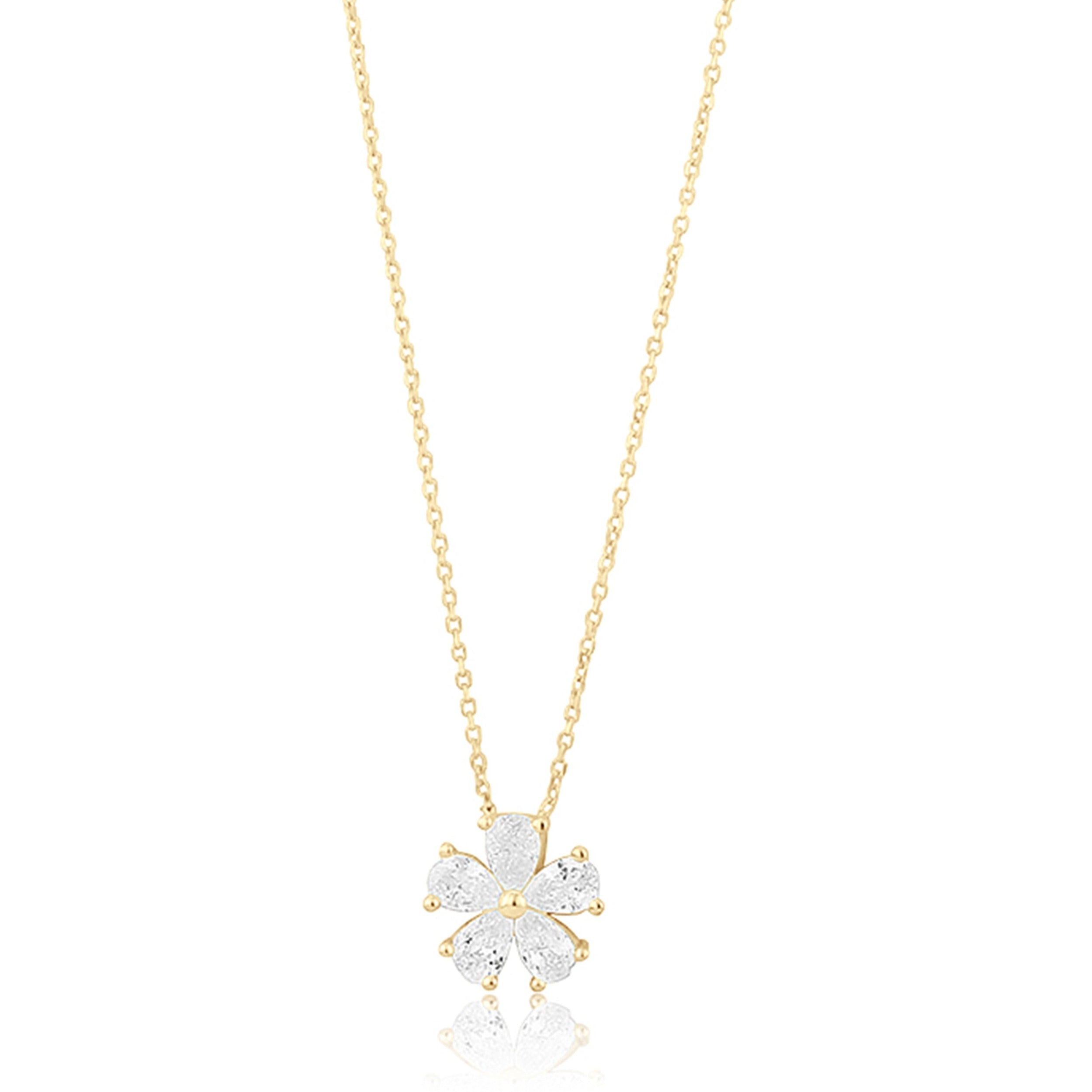 This Prong-Set Flower Necklace is a perfect everyday necklace. Crafted with gleaming prong details, it features sweet flower pedals that add a pop of sunshine to any look. Super pretty for everyday!