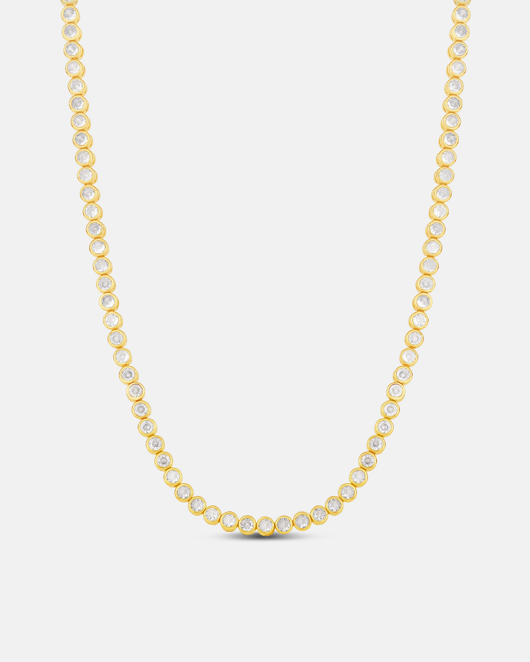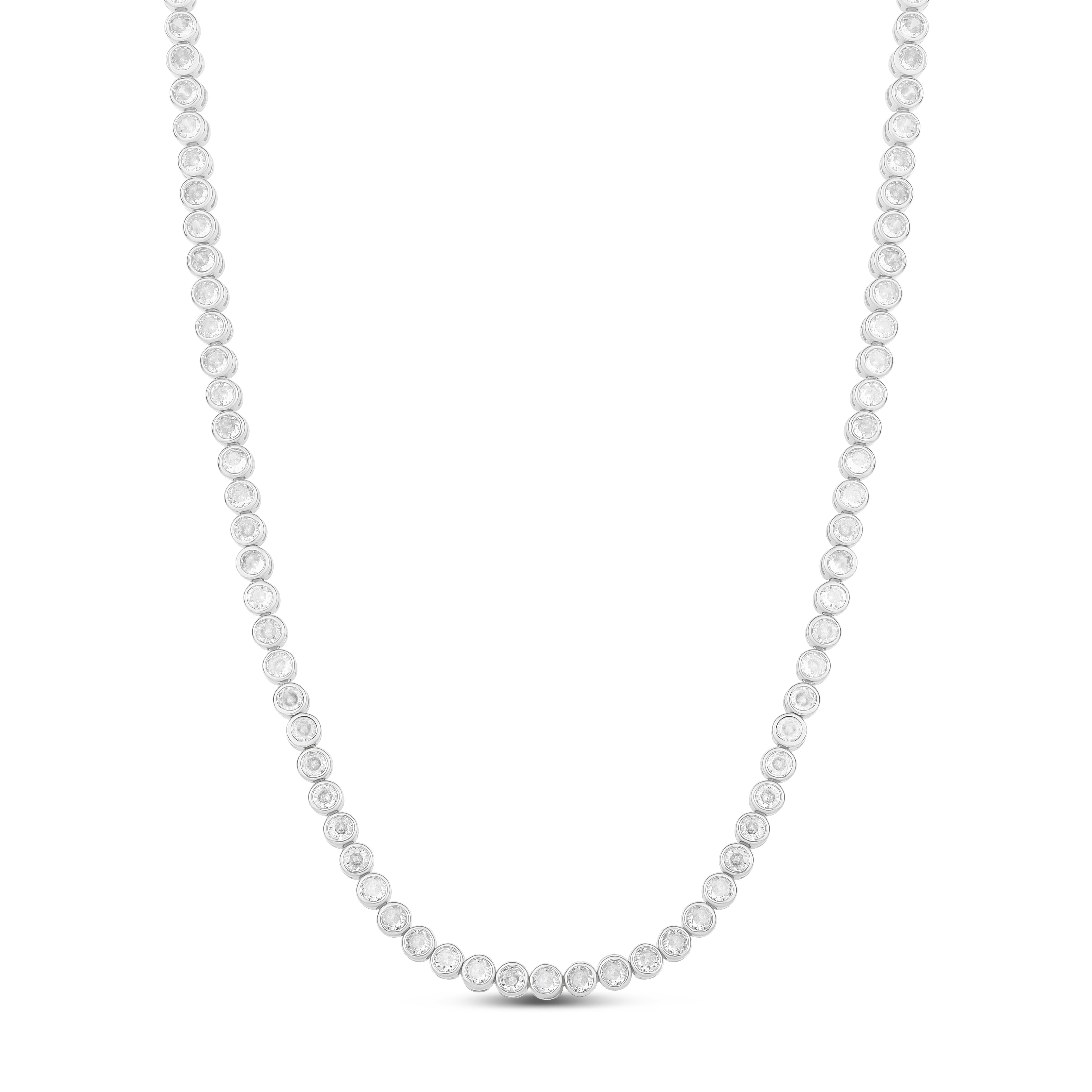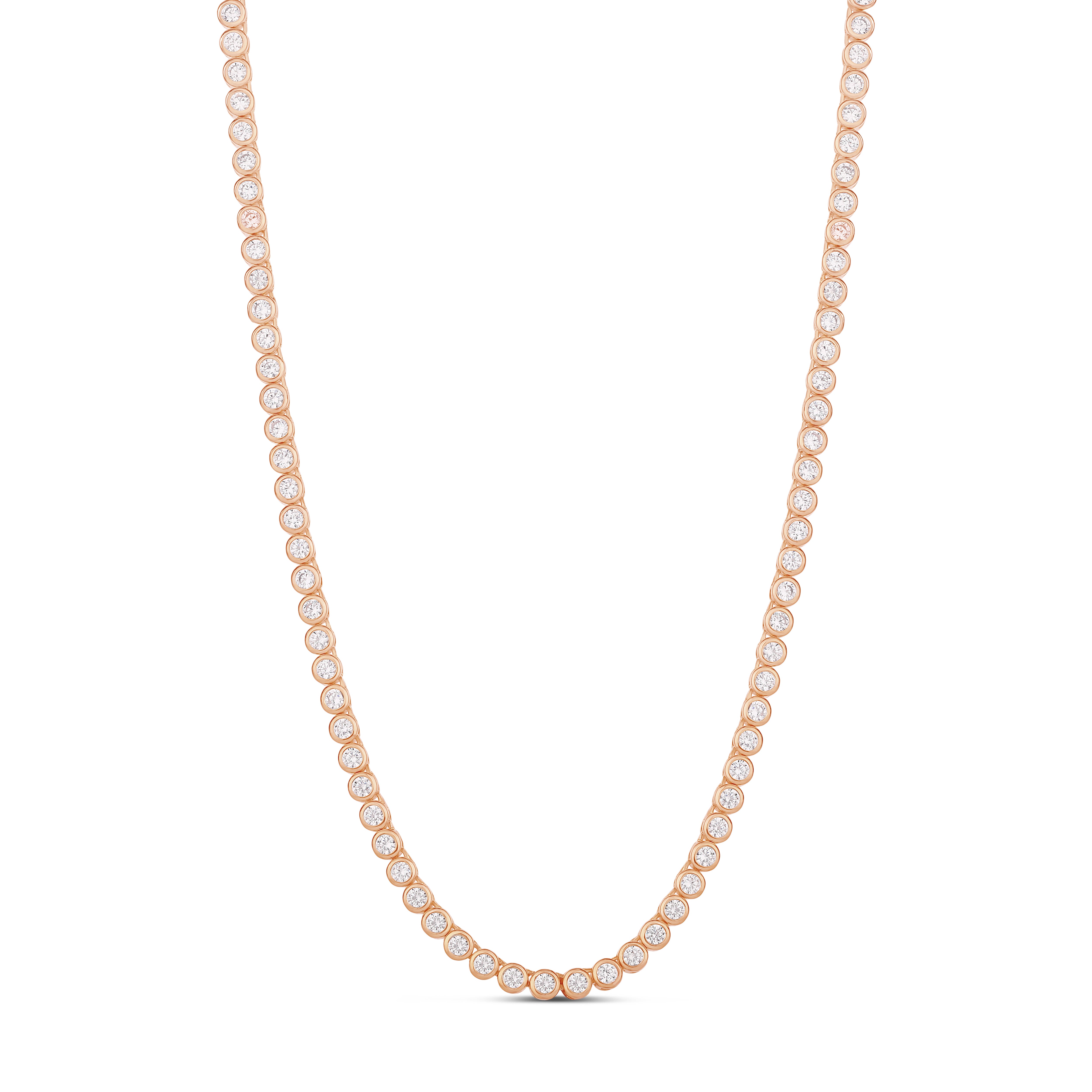 This Bezel-Set Classic Round Tennis Necklace has all the features you need to make a statement. With a round bezel set style, it's perfect for layering and has a subtle yet gorgeous look. On trend and versatile, this necklace will add instant elegance to any outfit.