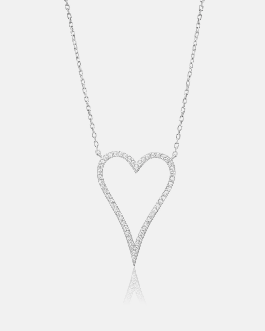 This thin pave outline heart necklace is an elegantly-crafted piece of jewelry with a classic look. Its elongated shape and thin glistening chain makes it perfect for any occasion. Make a statement on it's own or worn layered. Give this timeless gift to someone special or yourself. This is the large size from the collection.