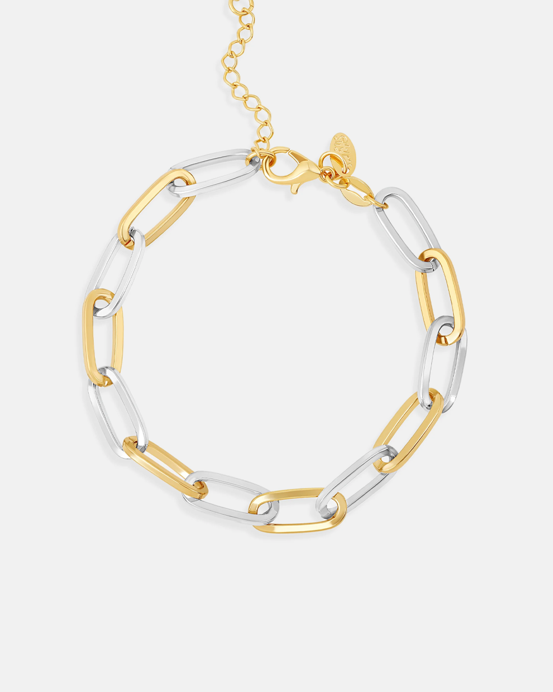 Expertly crafted with a minimalist design, this 5mm two tone gold and silver oval paper clip bracelet effortlessly adds a touch of elegance to any outfit. Its versatile style makes it the perfect accessory for any occasion.