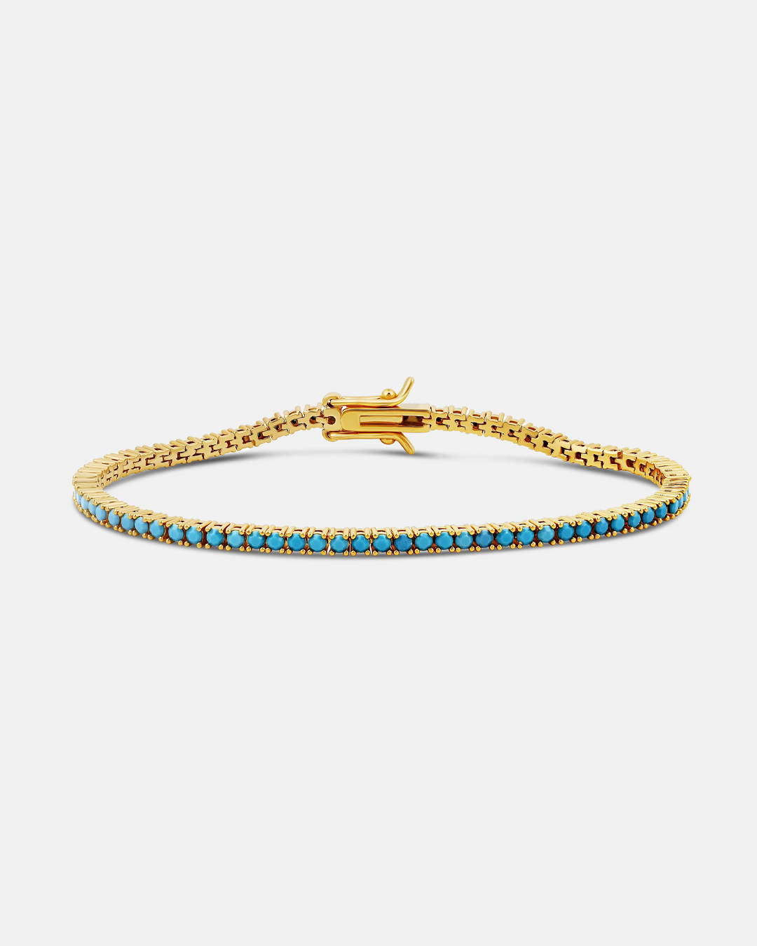 Elevate your daily look with the Classic 2mm Turquoise Tennis Bracelet, a refined addition that brings a perfect pop of color to any stack. Its delicate design seamlessly complements both casual and elegant styles, making it an essential piece for effortless sophistication every day.