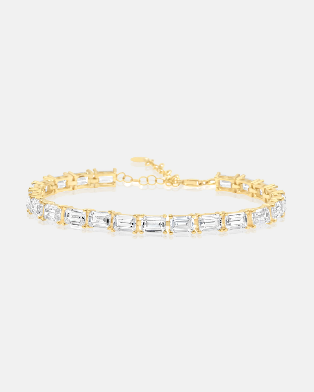 This stunning baguette prong set tennis bracelet is the perfect accessory for an elevated everyday look. It features gorgeous baguette shape prong set stones, and easily transitions from day to night for any occasion.  A great addition to add to any stack for effortless glam.