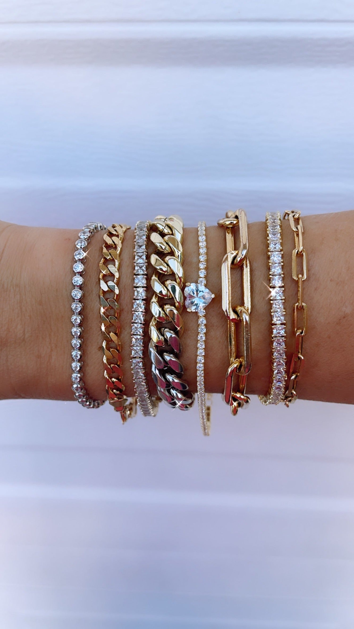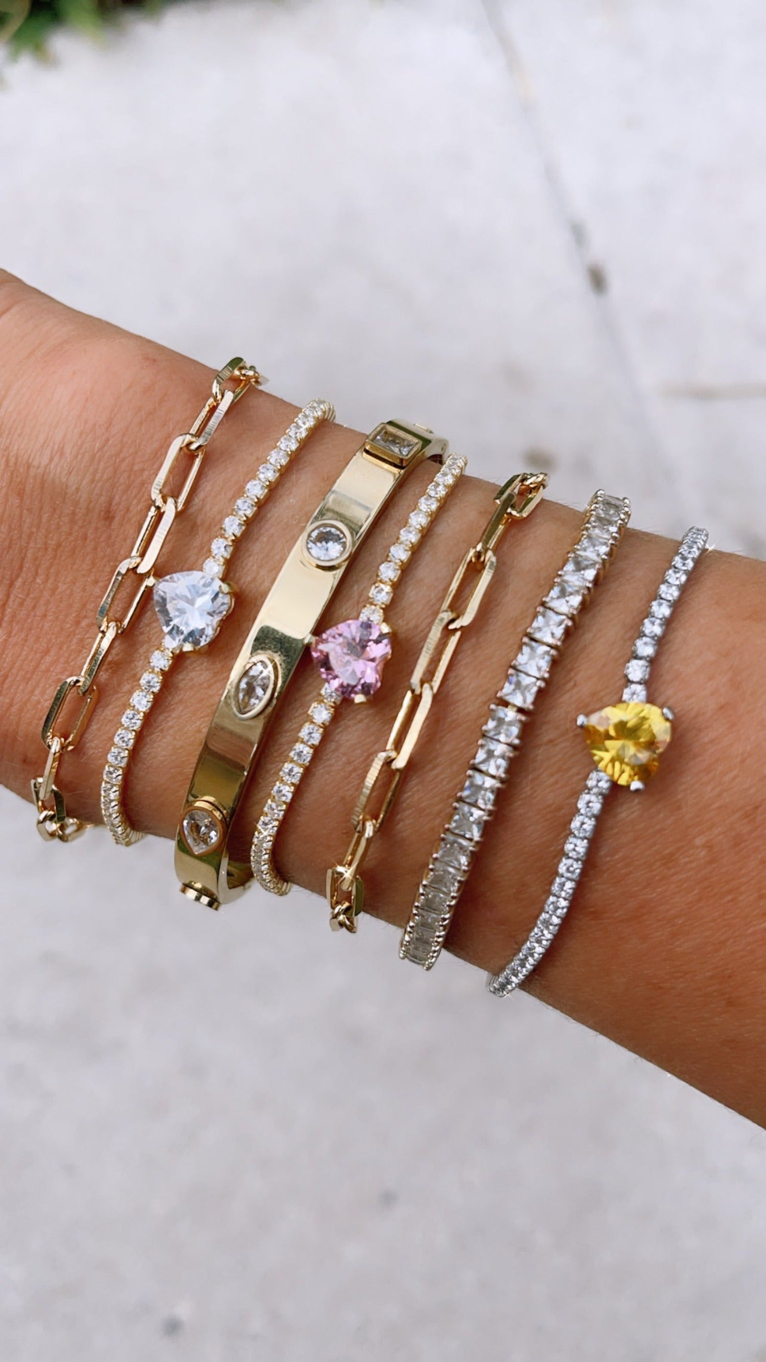 We are in love with this gorgeous fancy heart tennis bracelet. It is simply stunning on its own or can be layered for the perfect addition to your SHYMISTACK.