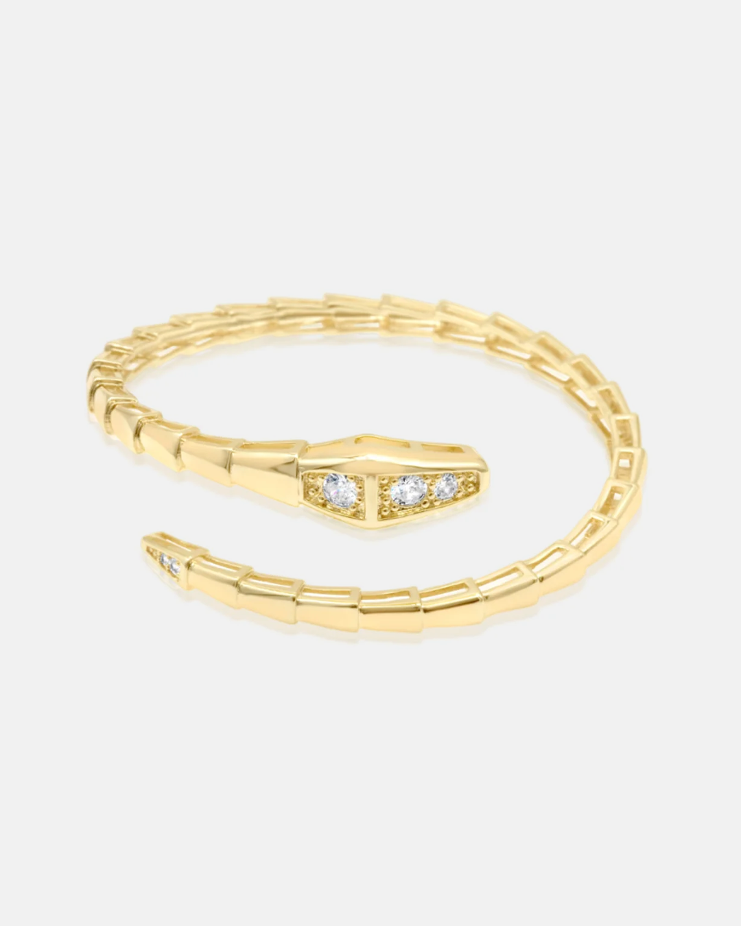 This stunning Snake Flexible Bangle is the perfect addition to any jewelry collection. Its flexible and adjustable design allows for easy wear and its pave stones all around add the perfect touch of glamour. Wear it alone for a chic daytime look or layer it for a statement evening look. A must-have for any fashionable individual.