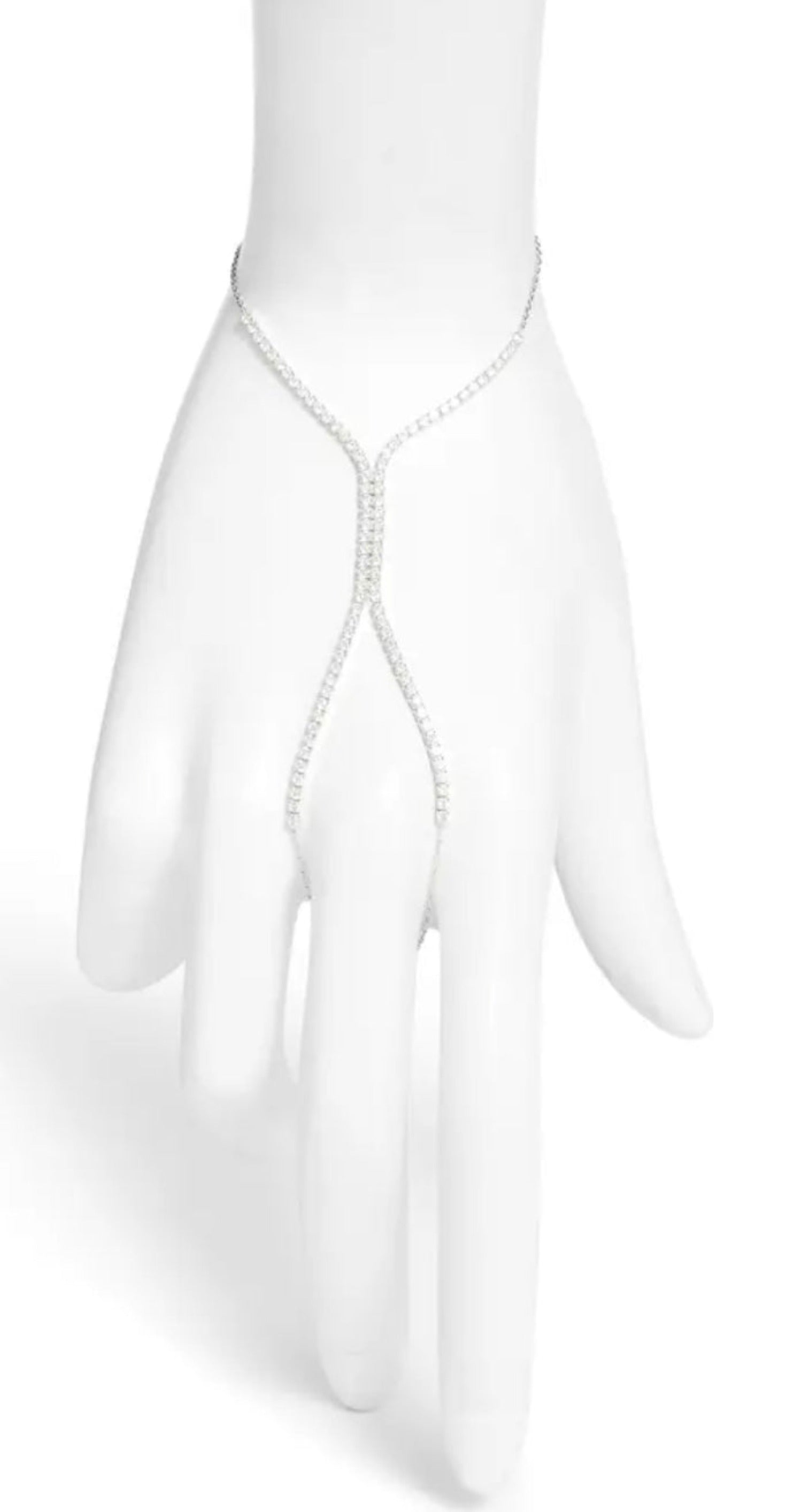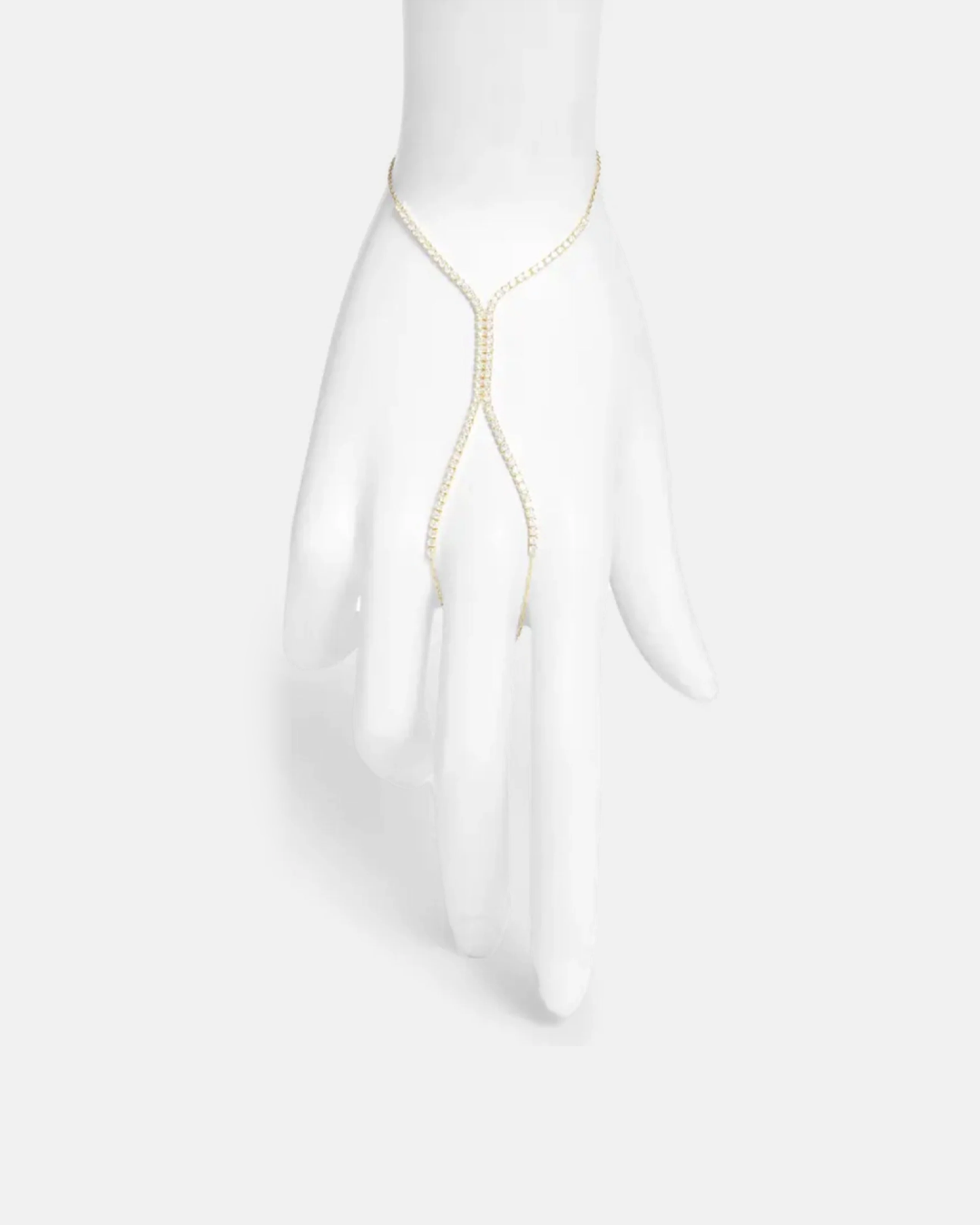 Sleek and modern, the Tennis Hand Chain is a stunning accessory for any occasion. Crafted with pave stones, this hand chain can be dressed up as a glamorous statement piece or kept casual for everyday wear. Enjoy a perfect blend of elegance and versatility.