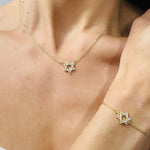 This Pave Star of David bracelet is a gorgeous and dainty accessory that is the perfect size. Carefully crafted with pave stones, this necklace is perfect by itself or layered with other pieces. Elevate your style with this elegant and versatile design.