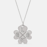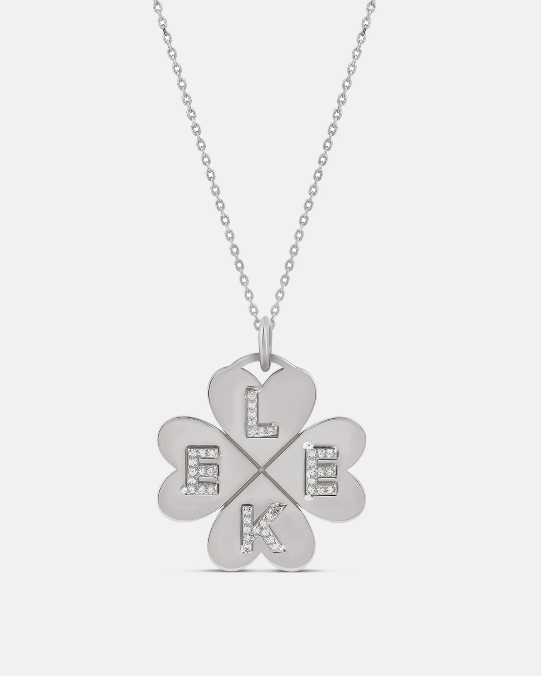 Elevate your style with the Personalized Four Leaf Clover Necklace, featuring a refined pendant embellished with four pave-set initials. This elegant piece combines meaningful personalization with timeless design, making it a graceful accessory that enhances any ensemble and carries a touch of luck wherever you go.