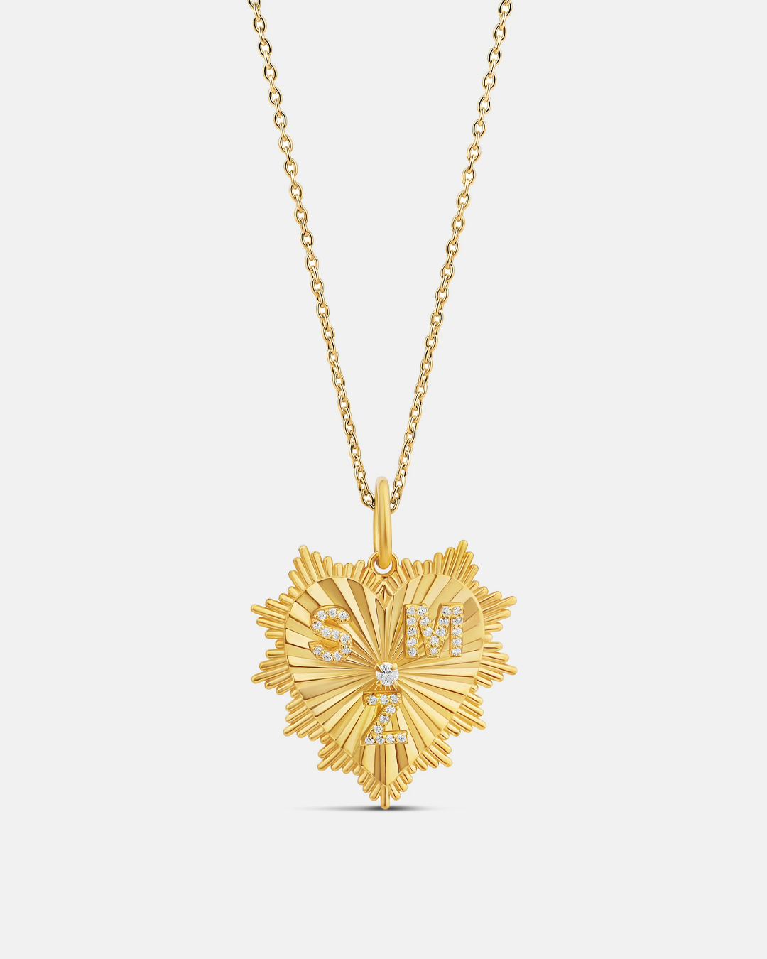 Crafted with precision, this Personalized Fluted Pave Heart Letter Initial Charm offers a distinctive way to showcase your identity. Its intricate uppercase lettering adds a bold, timeless edge to any jewelry collection. Perfect for layering or wearing solo, this charm transforms your accessory into a statement piece that reflects your unique style with expert craftsmanship.