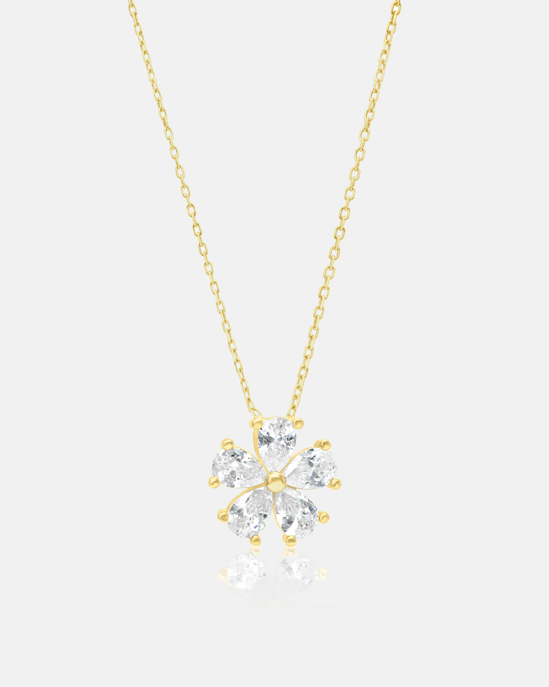 This Prong-Set Flower Necklace is a perfect everyday necklace. Crafted with gleaming prong details, it features sweet flower pedals that add a pop of sunshine to any look. Super pretty for everyday!