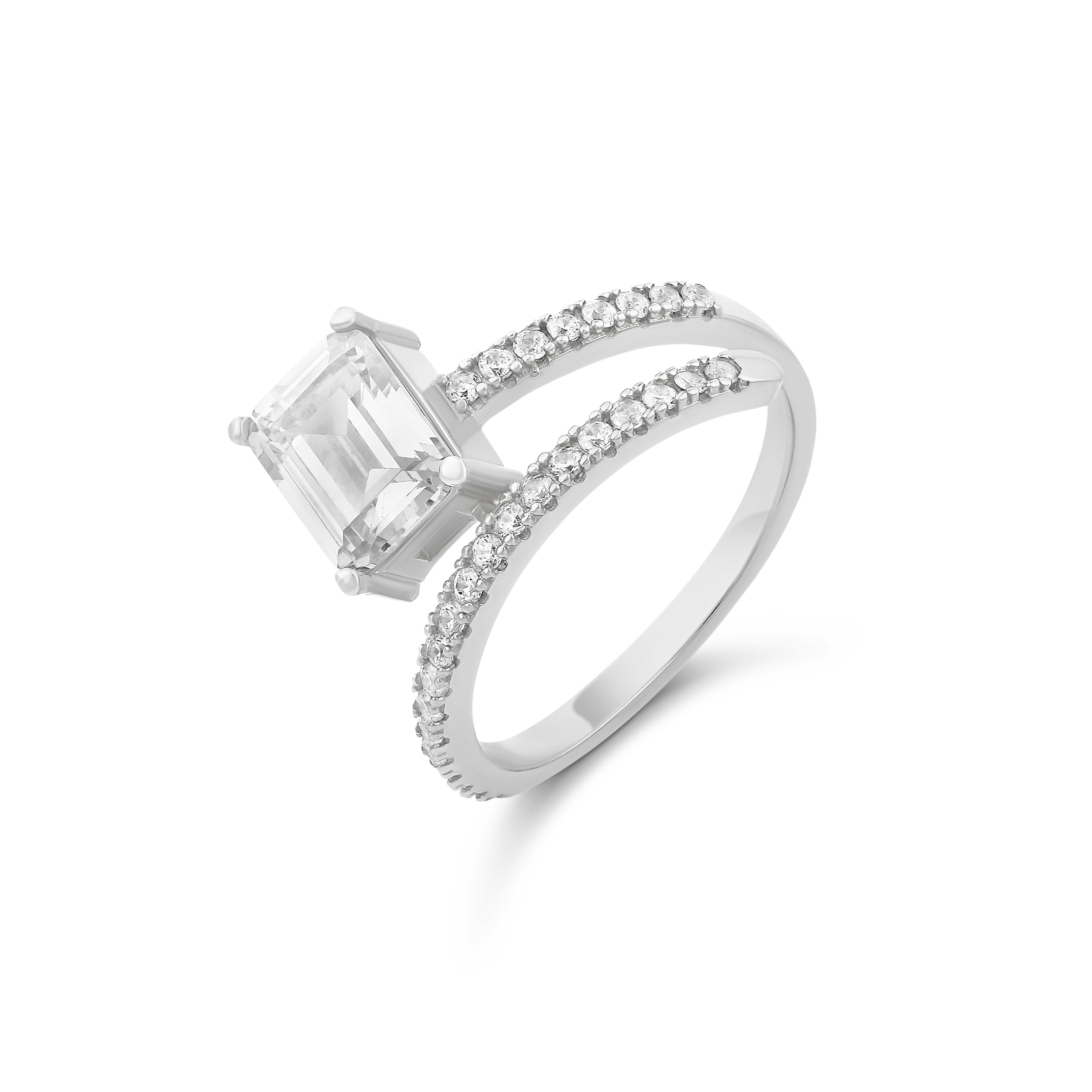 This Half Way Around Emerald Statement Ring offers a beautiful, one-of-a-kind look. Its gently curved band wraps around the finger half way, adorned with a stunning emerald-cut stone to provide a subtle but eye-catching statement. Crafted with care, it's the perfect accessory for any occasion.