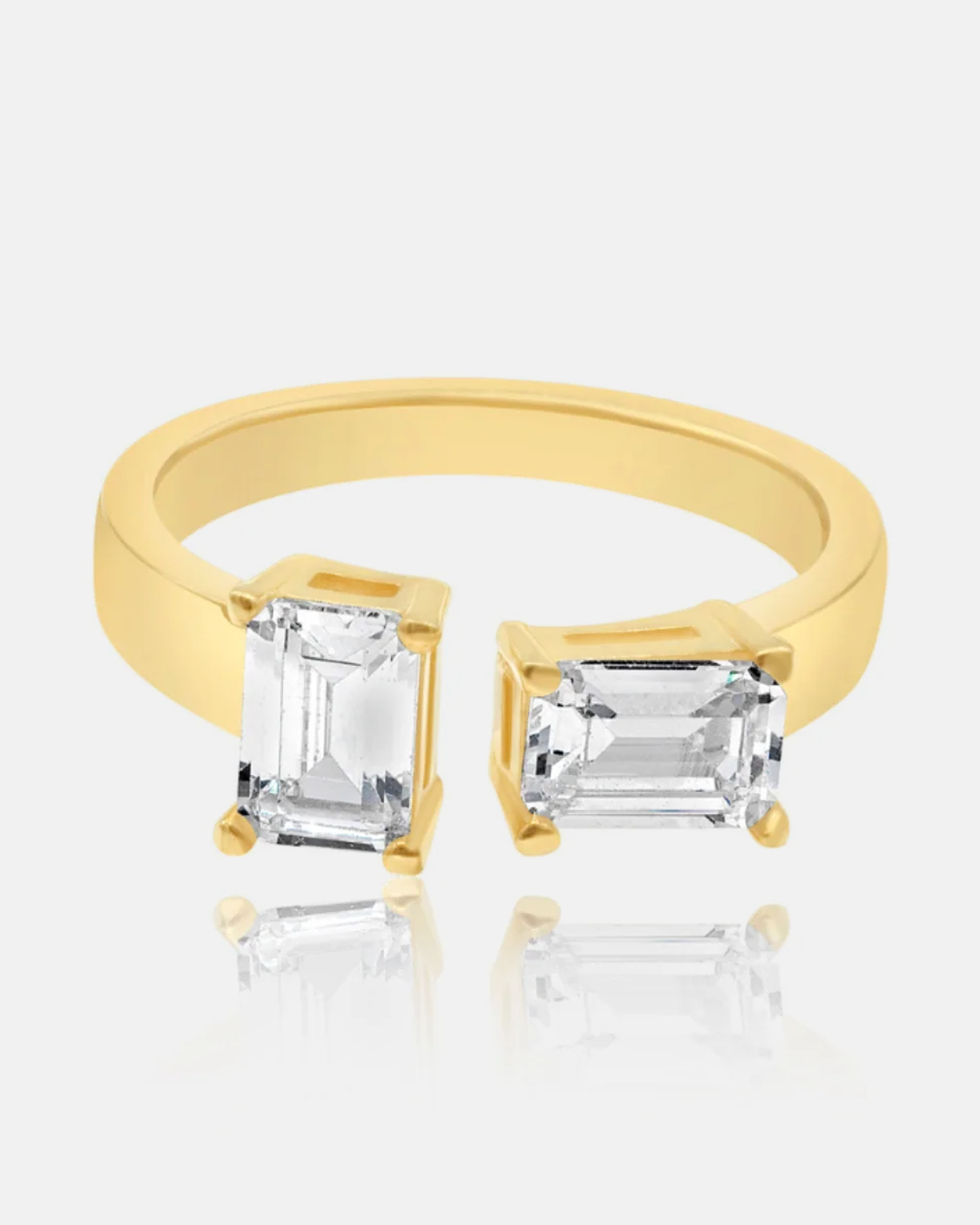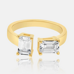 Elevate your look with our gorgeous Two Stone Cuff Stack Ring. This minimalistic yet dramatic open cuff design is versatile for both evening and daytime wear. Its sleek style adds a touch of sophistication to any outfit. Expertly crafted for a flawless finish.