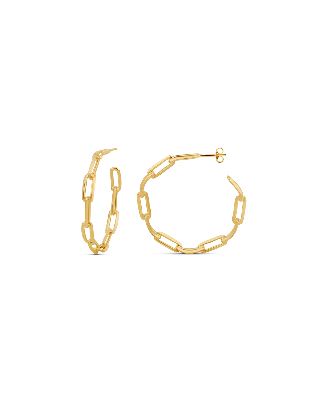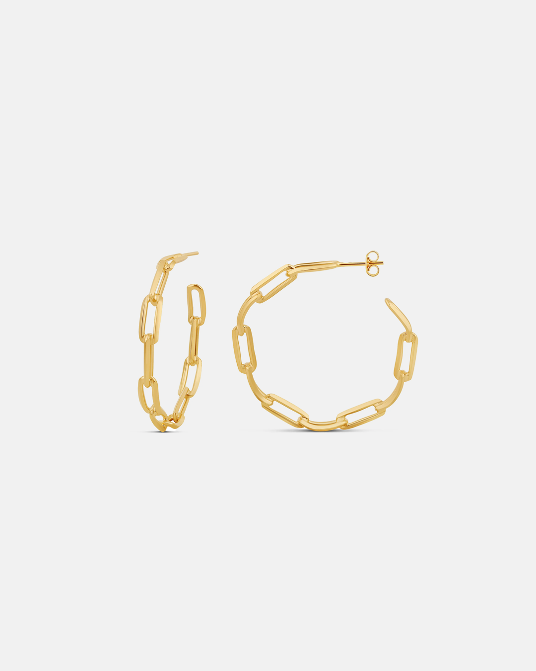Our Link Hoops are an easy way to add stylish flair to any look. Crafted from a super light link chain, these medium size hoop earrings are the perfect balance of casual and classic. Elevate your style today with our Link Hoops.