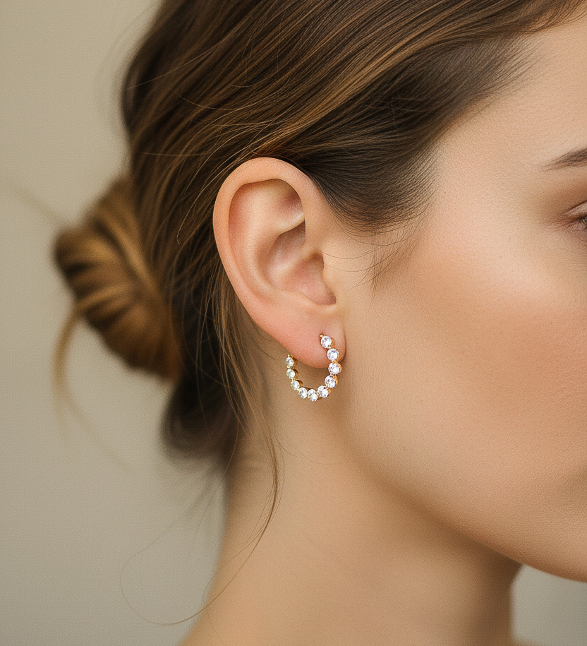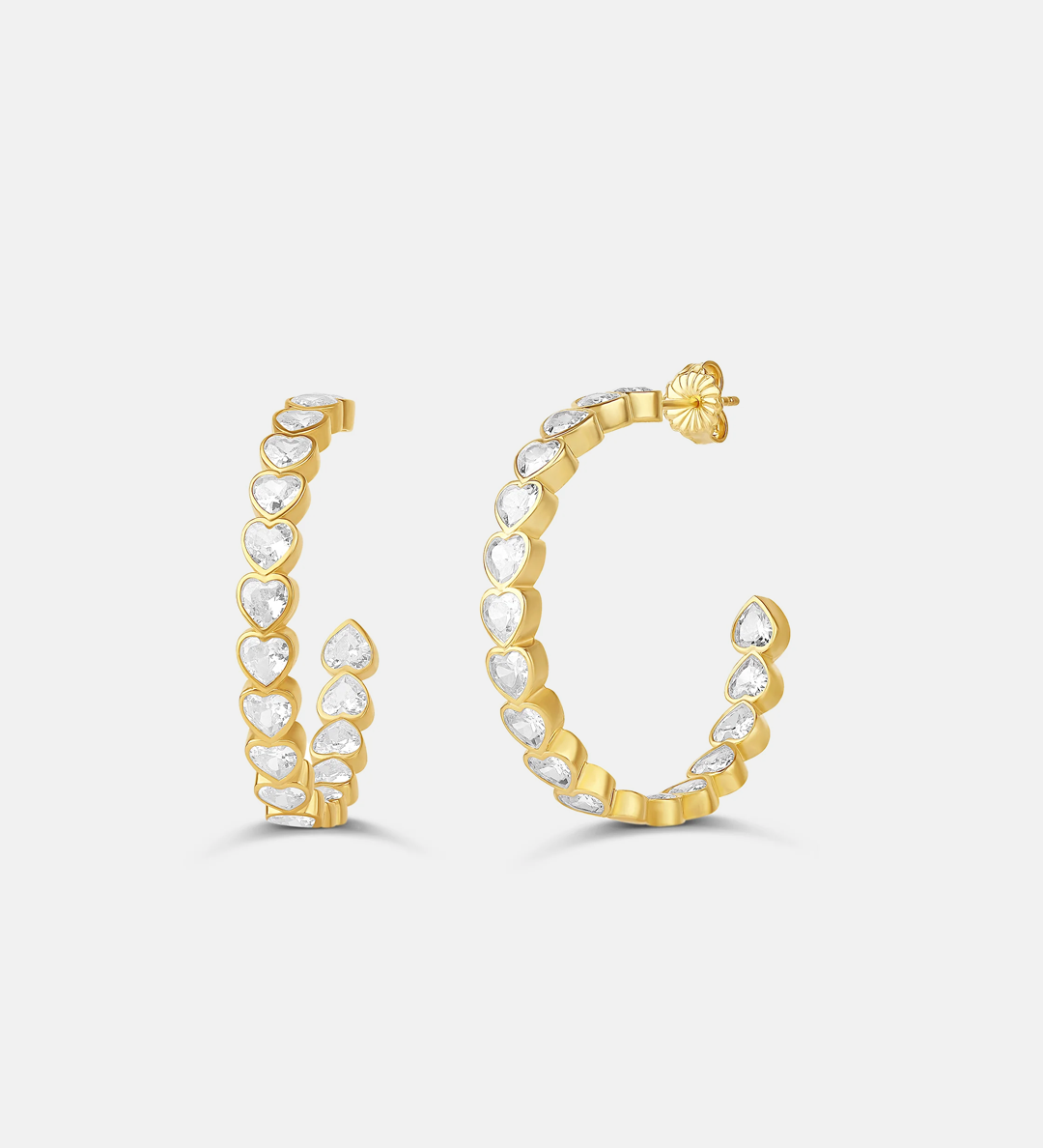 Large Bezel Set Heart Hoops